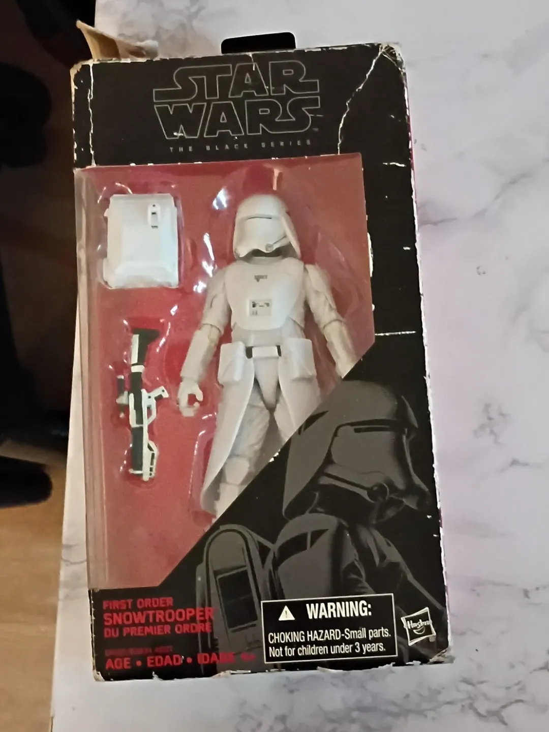 Selling a Star Wars The Black Series First Order Snowtrooper action figure! The box has some wear and tear, but the figure is in great shape. It includes the figure and accessories as pictured. Perfect for any Star Wars collector!