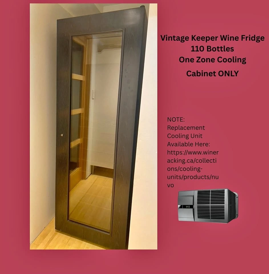This handsome compact black-stained oak cabinet looks great in every setting. Holds 110 bottles. Cabinet only. Cooling units must be replaced every 7-10 years. Product is available through Wineracking.ca