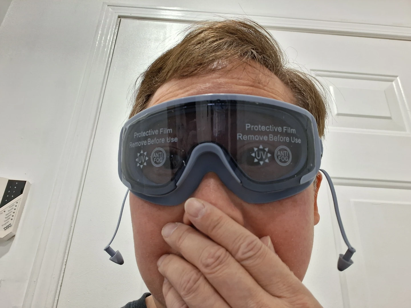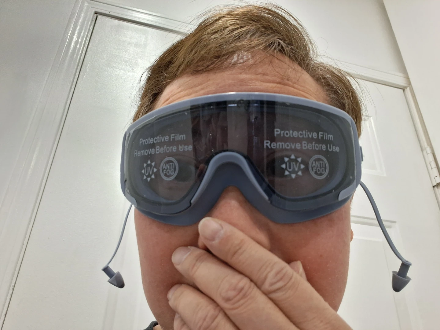 Goggles, NEVER FOG, UV Protection, New, for Snowboard or Skis, NEVER FOG up because it is swimming goggles but 100% sealed, Anti fog completely, NEVER Fog up anyway. It is very comfortable as well because of the soft silicon edge with complete seal for different facial contours.