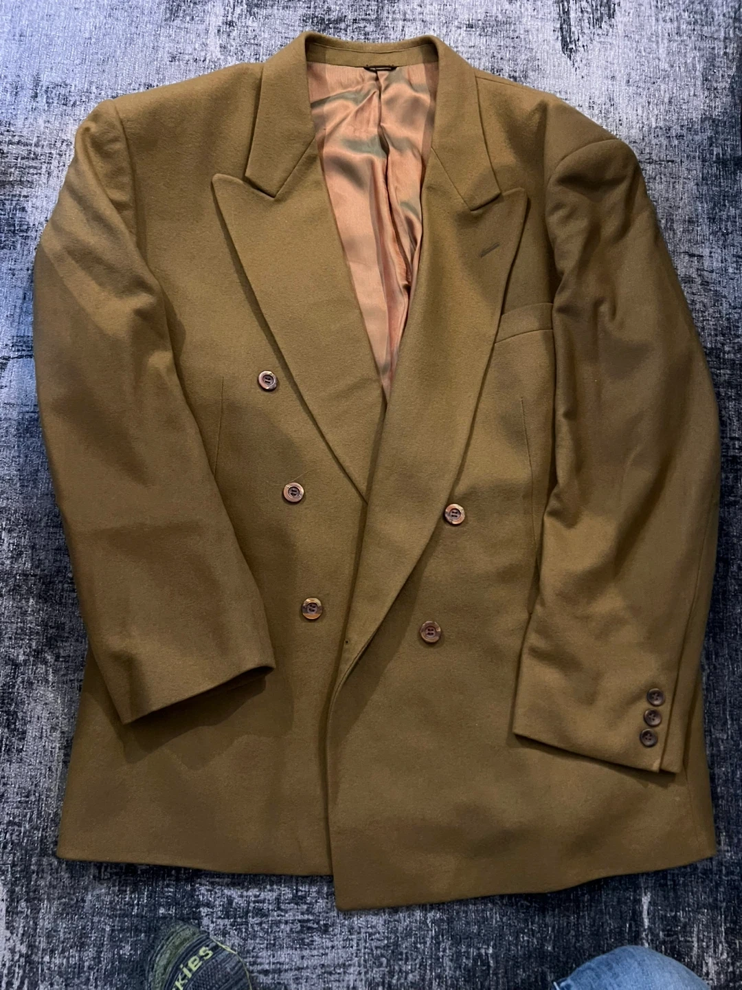 3. Mustard coloured double breasted wool jacket from Lil a lil couture. Made in Canada. 44 but fits wide.