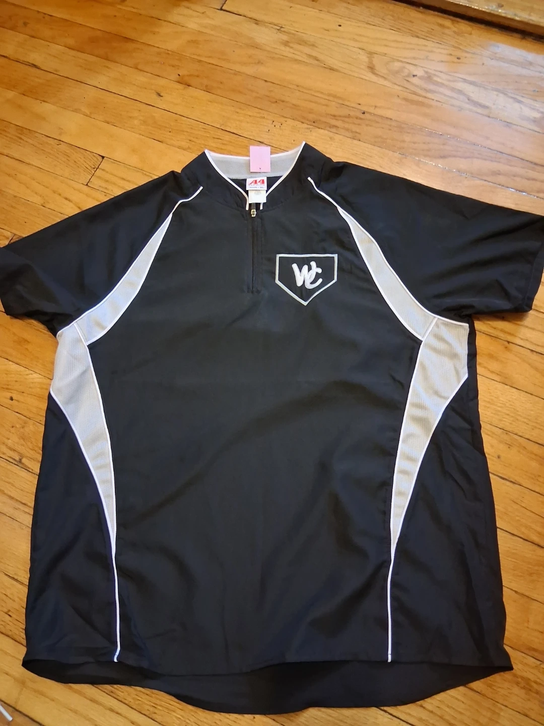 Selling an A4 brand youth baseball pullover jacket in size XL. It's black with white accents and features a quarter-zip design. Perfect for staying warm during practices or games!