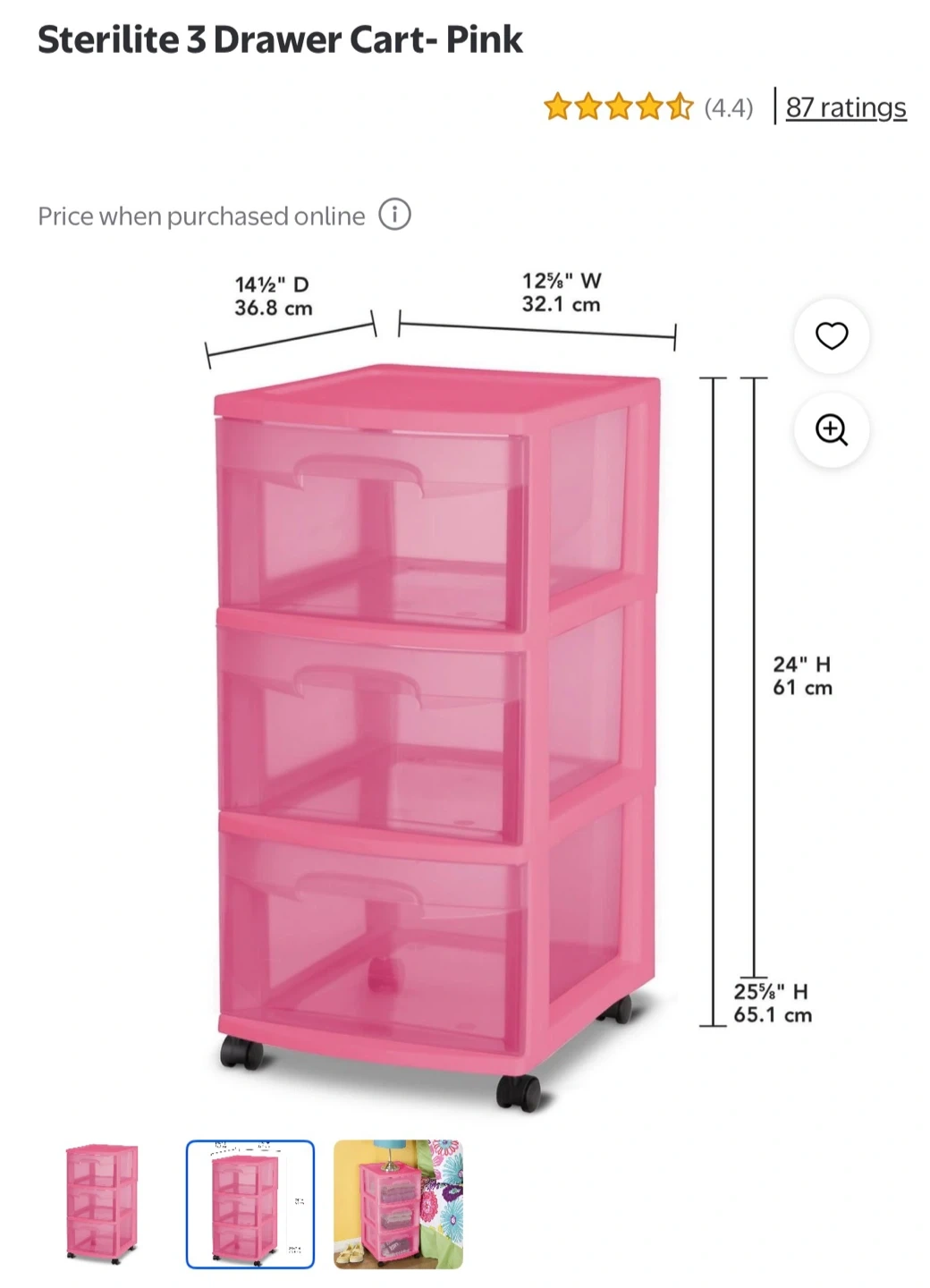 Buy & SellPink 3-Drawer Plastic Storage UnitPink 3-Drawer Plastic Storage Unit$16Some markings shown Wheels inside, never used Pick up Cosburn Avenue,TorontoConditionGoodWHERE TO MEETCheck LocationView MapSELLERArianeDanforth E York425 reviews1 chats·4 favorites·42 viewsSEND CHAT TO SELLERHi Ariane! I’m interested in your listing.Hi Ariane! I’m interested in your listing.Get the Karrot app to chatSign In to chat