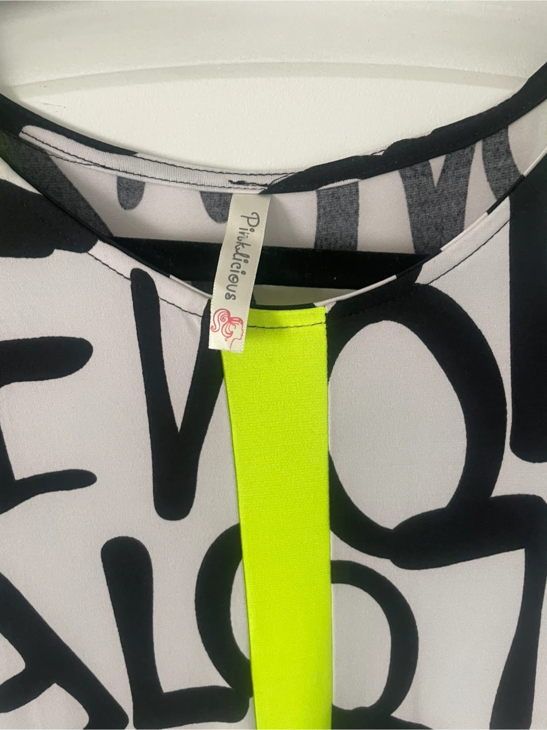 Stylish Pinklicious dress featuring a bold black and white print with eye-catching neon yellow accents! Perfect for making a statement and adding a pop of colour to your wardrobe. Size small