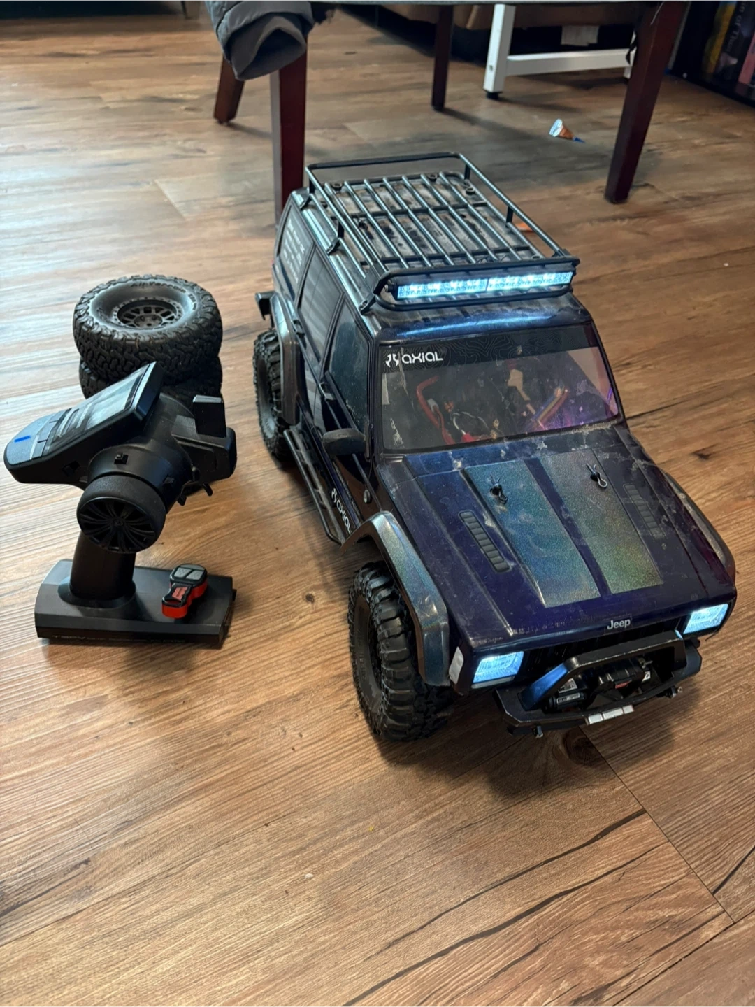 Selling an Axial SCX10II Jeep RC truck. It comes with a Futaba T3PV controller. It has been well used and is very reliable . Lots of custom parts including light kits (front, rear and light bar)a waterproof Savox servo and a 2S-powered Novac Timbuk motor and ESC, both prepped for cold weather fun. Includes extra set of summer tires and two 4000MAH batteries. Ready to run!