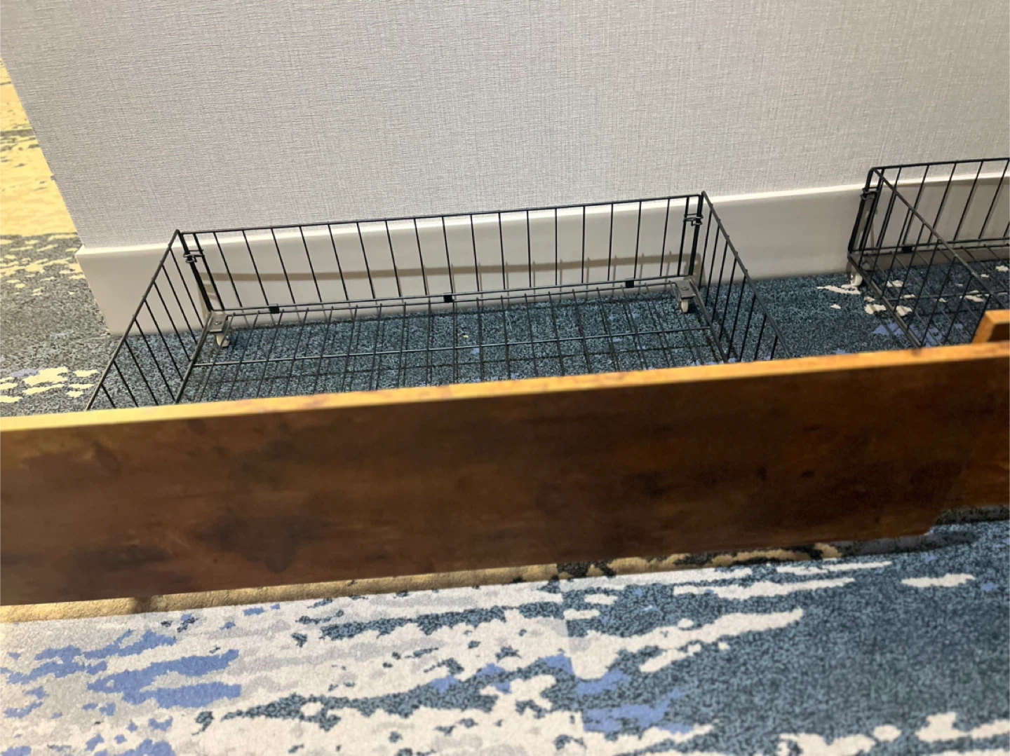 These storage baskets are perfect for adding some extra storage to your home! They feature a wood-look front and a metal basket, and they're in great condition.