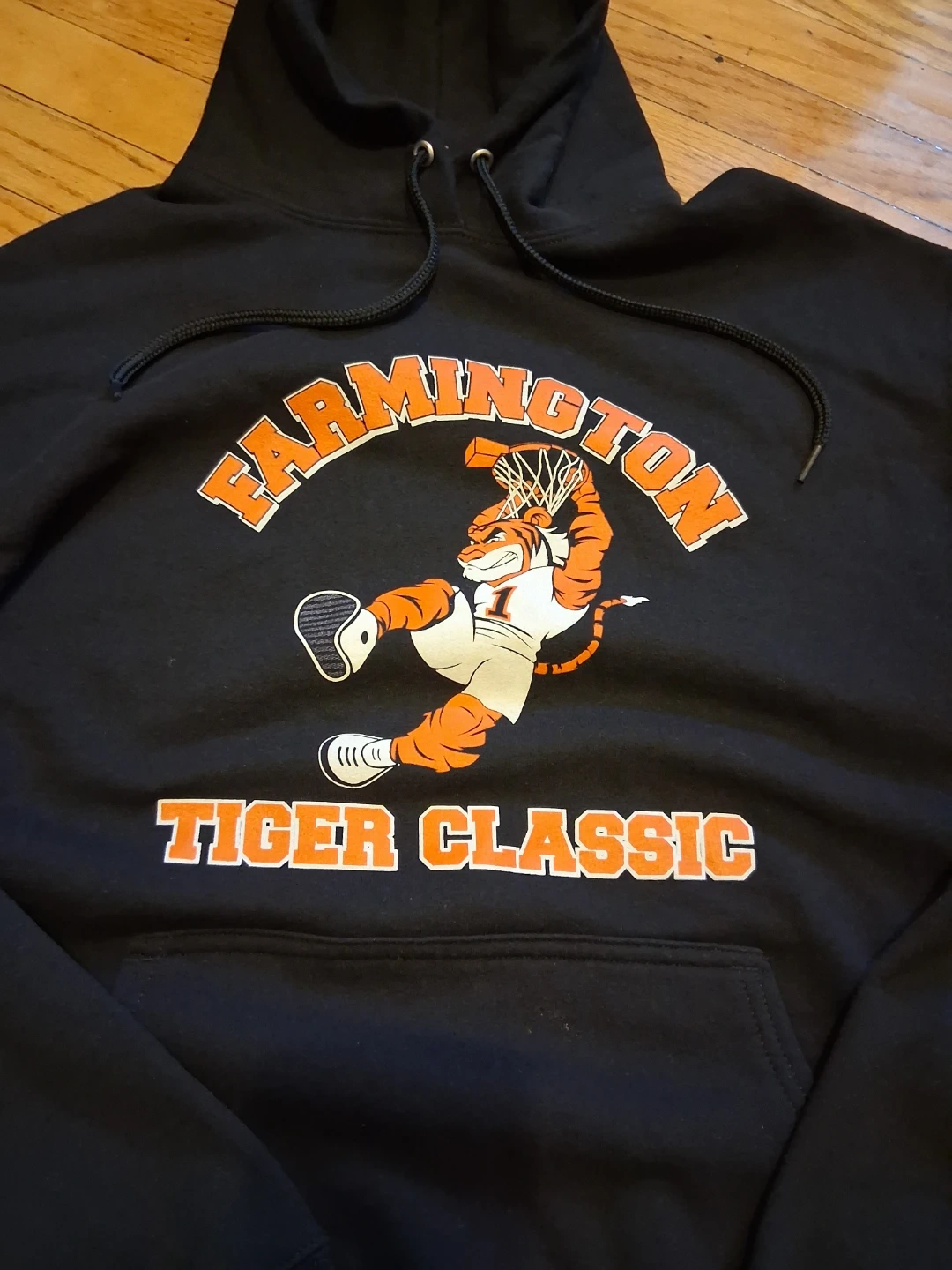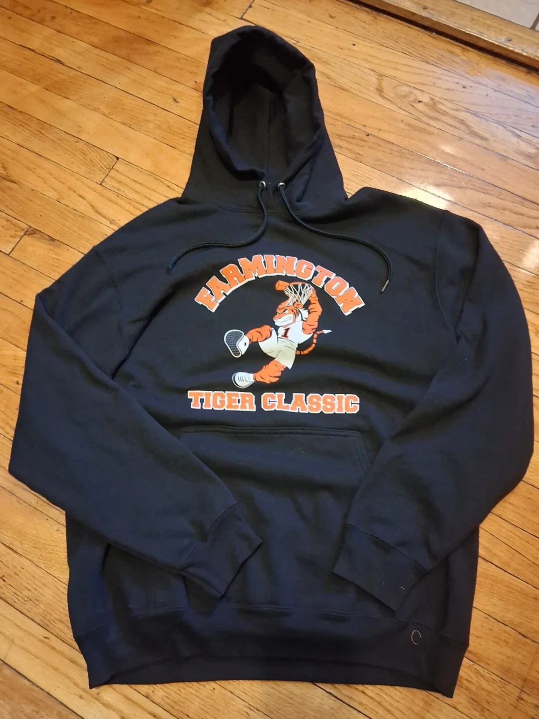 Selling a Champion black hoodie with the Farmington Tiger Classic design. It's in great condition and ready for a new owner! The hoodie features a cool tiger graphic and is perfect for showing off your school spirit or just staying cozy