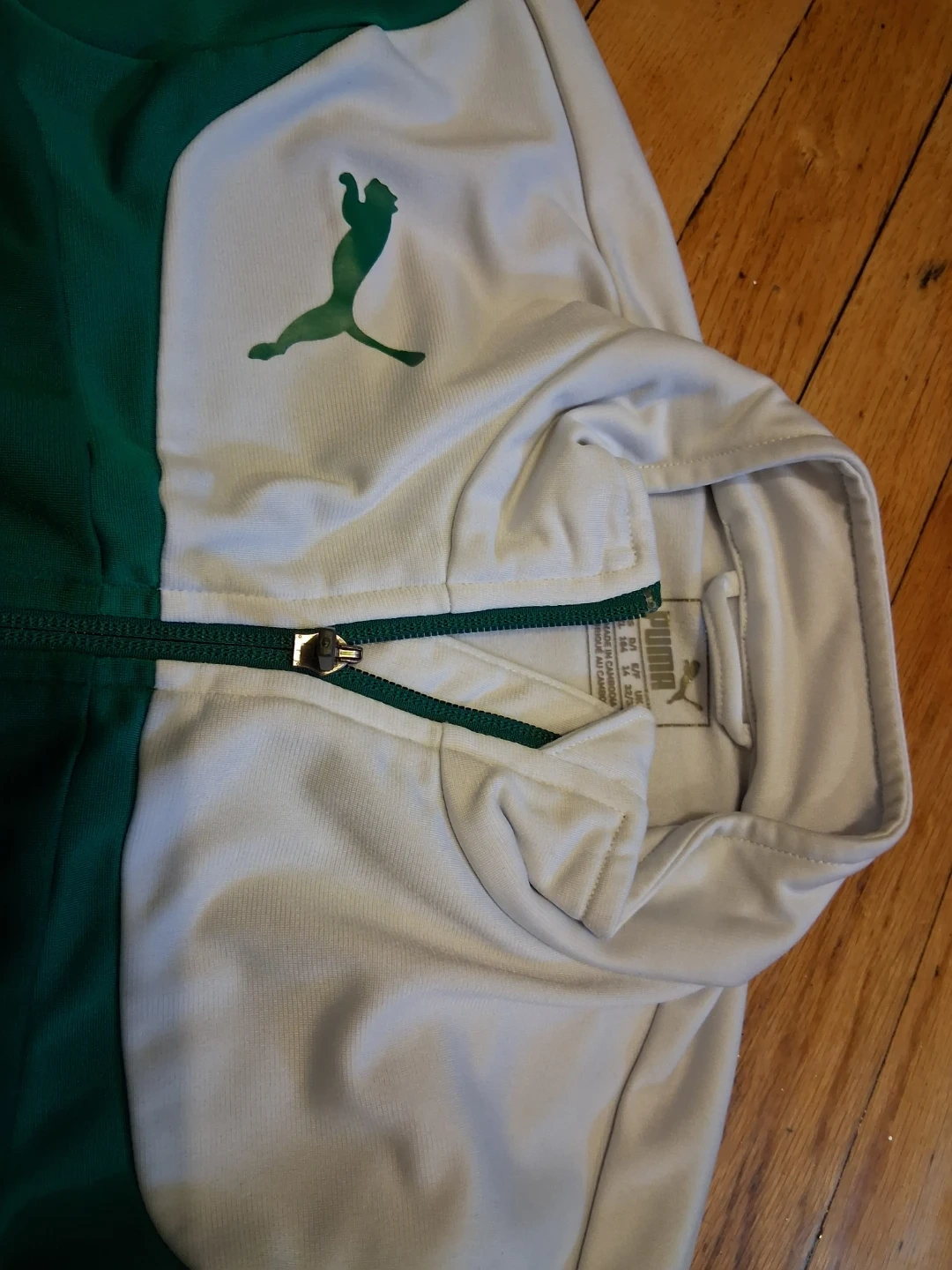Selling a Puma track jacket in green and white. It's in great condition and perfect for workouts or casual wear