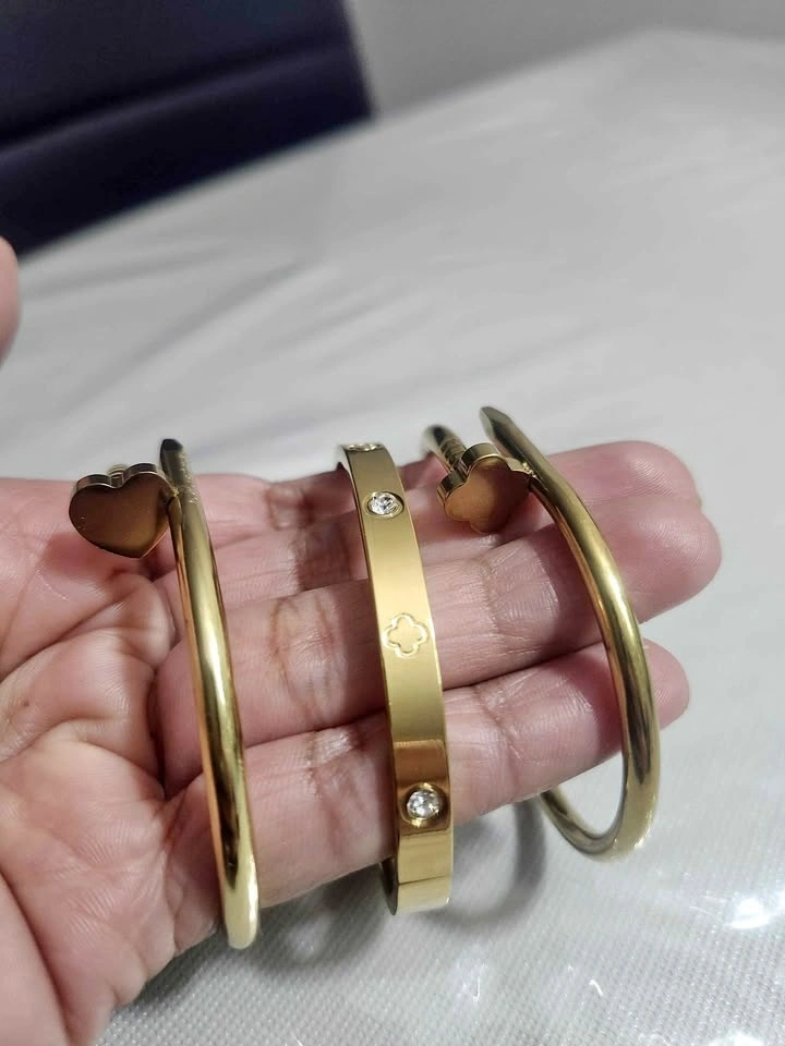 ✨ Elegant Gold Clover Bracelet Set – 3 Pieces ✨