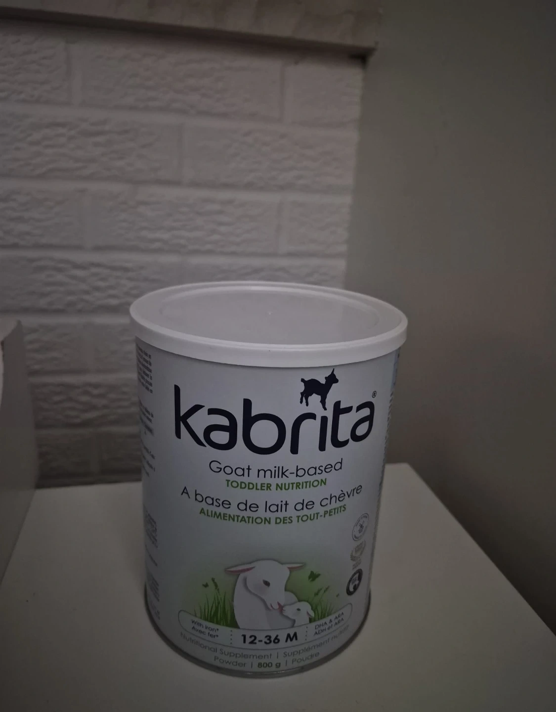 Selling a can of Kabrita Goat Milk-Based Toddler Nutrition. It's designed for toddlers aged 12-36 months and comes in an 800g can. It's a goat milk-based formula with a nutritional supplement. Perfect for your little one!