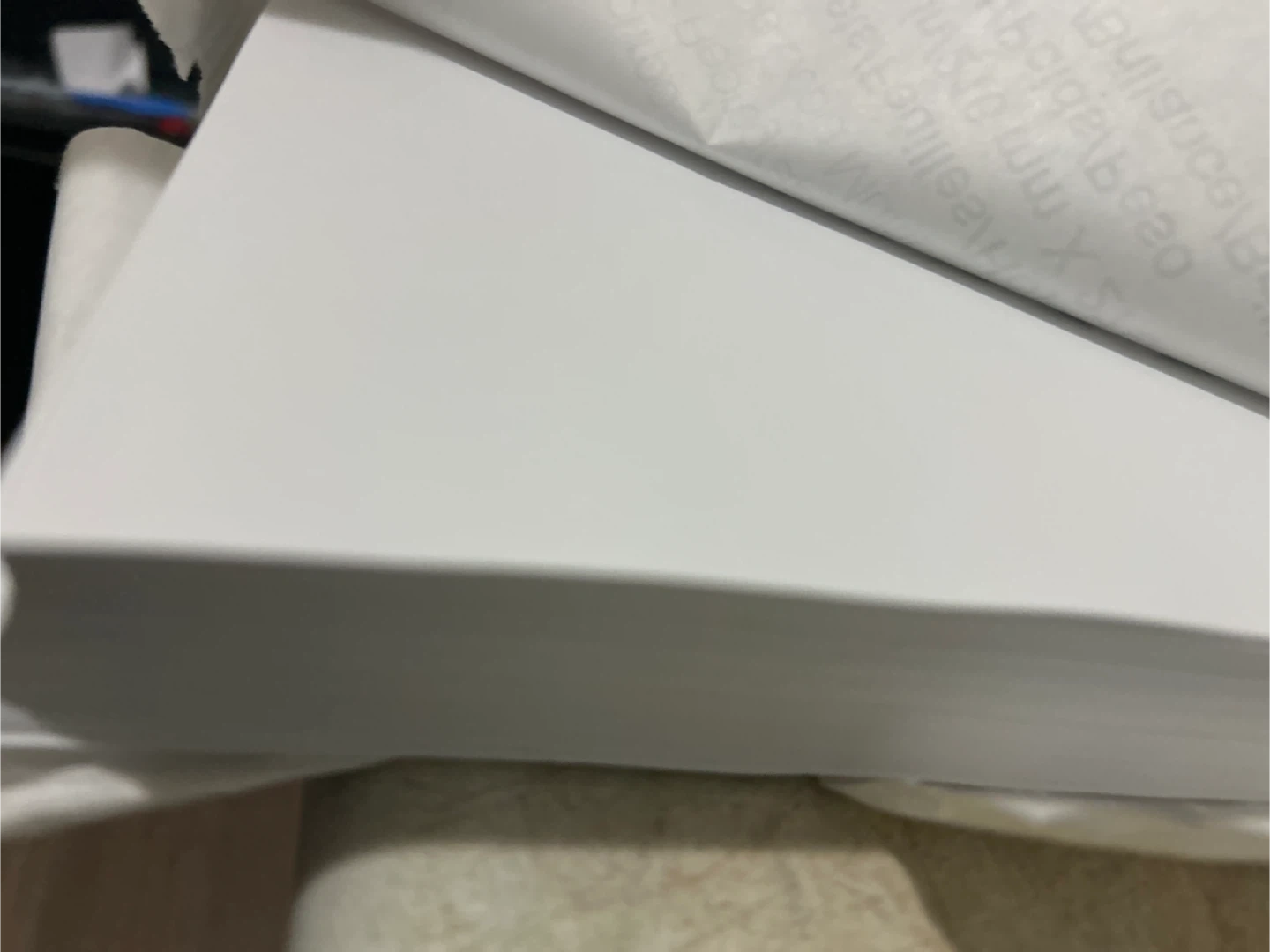 Selling a pack of Amazon Basics Multipurpose Copy Paper. It contains 500 sheets of paper, each measuring 8.5 in x 11 in (216 mm x 279 mm). The paper weight is 20 lb, and it has a brightness of 92.