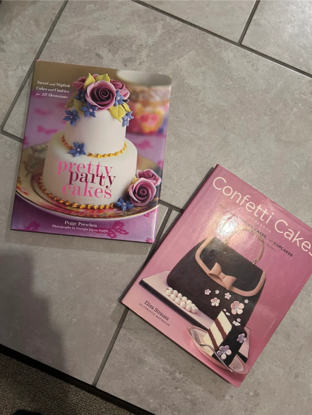 Selling two cake decorating books! One is 'Pretty Party Cakes' by Peggy Porschen, and the other is 'Confetti Cakes' by Elisa Strauss. Both books offer sweet and stylish ideas for cakes and cookies for all occasions