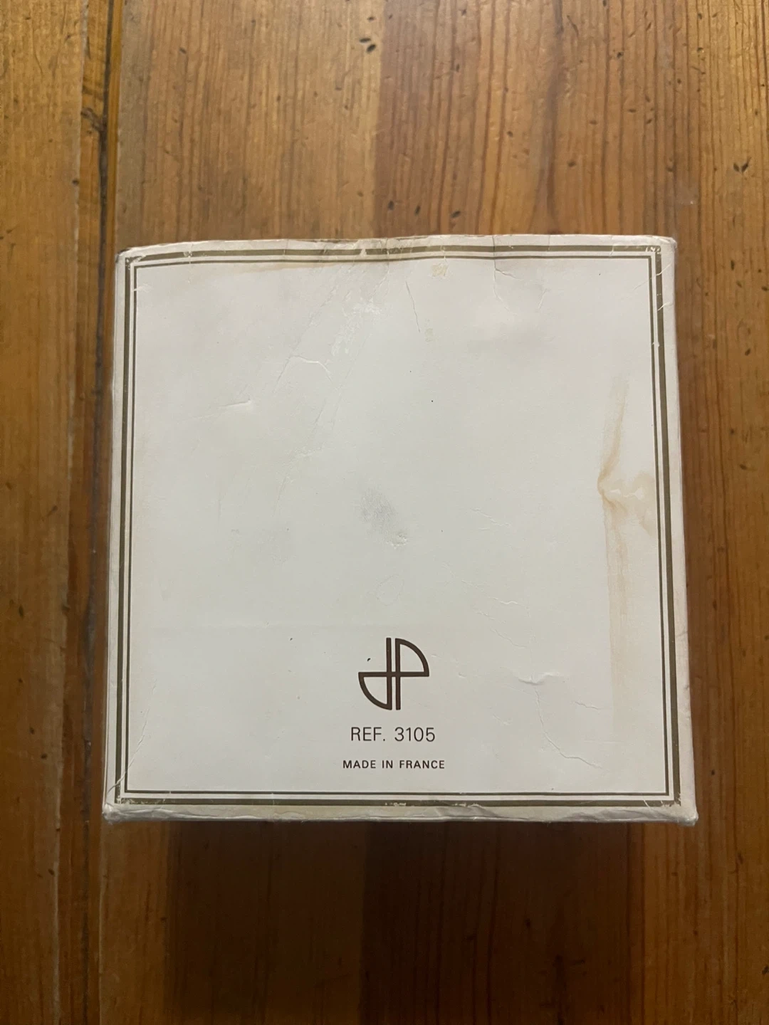 The outer white box has water stains and is slightly damaged from sitting in storage for so long. The inner plastic case and velvet storage box are in excellent condition.