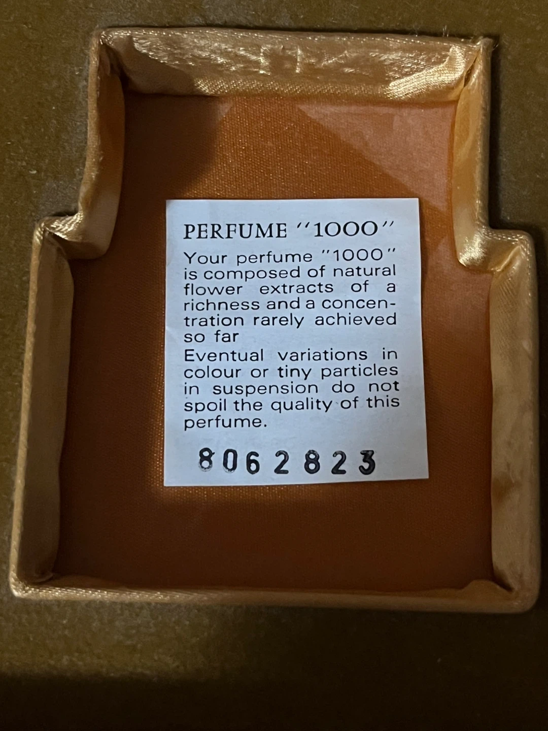 The outer box has the batch number 8062823 showing that it was made in June 1982. A truly retro/vintage perfume.