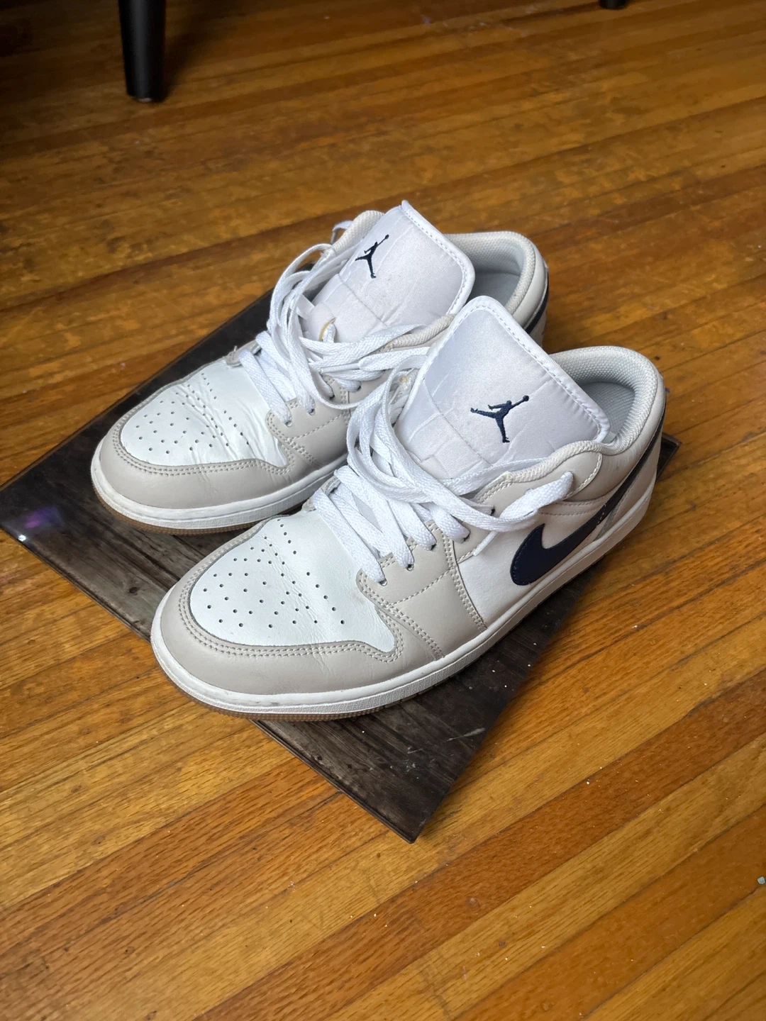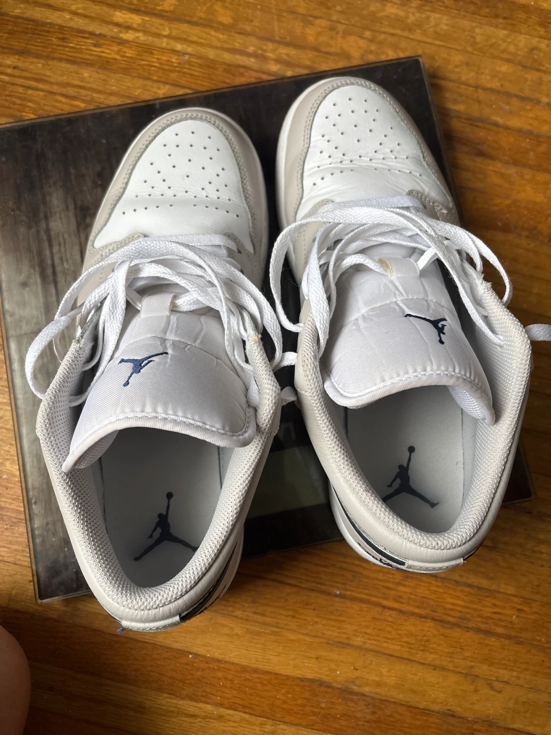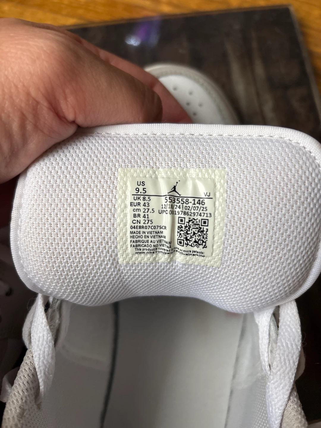 Selling a pair of Air Jordan 1 Low sneakers in a clean white and grey colourway! They're in great shape and ready for a new owner. Size is US 9.5