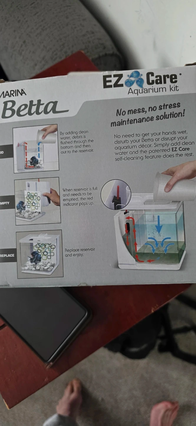 Selling a Marina Betta EZ Care Aquarium Kit! It's designed for easy maintenance with a self-cleaning feature. Just add clean water, and the system takes care of the rest, removing debris without disturbing your betta or decor