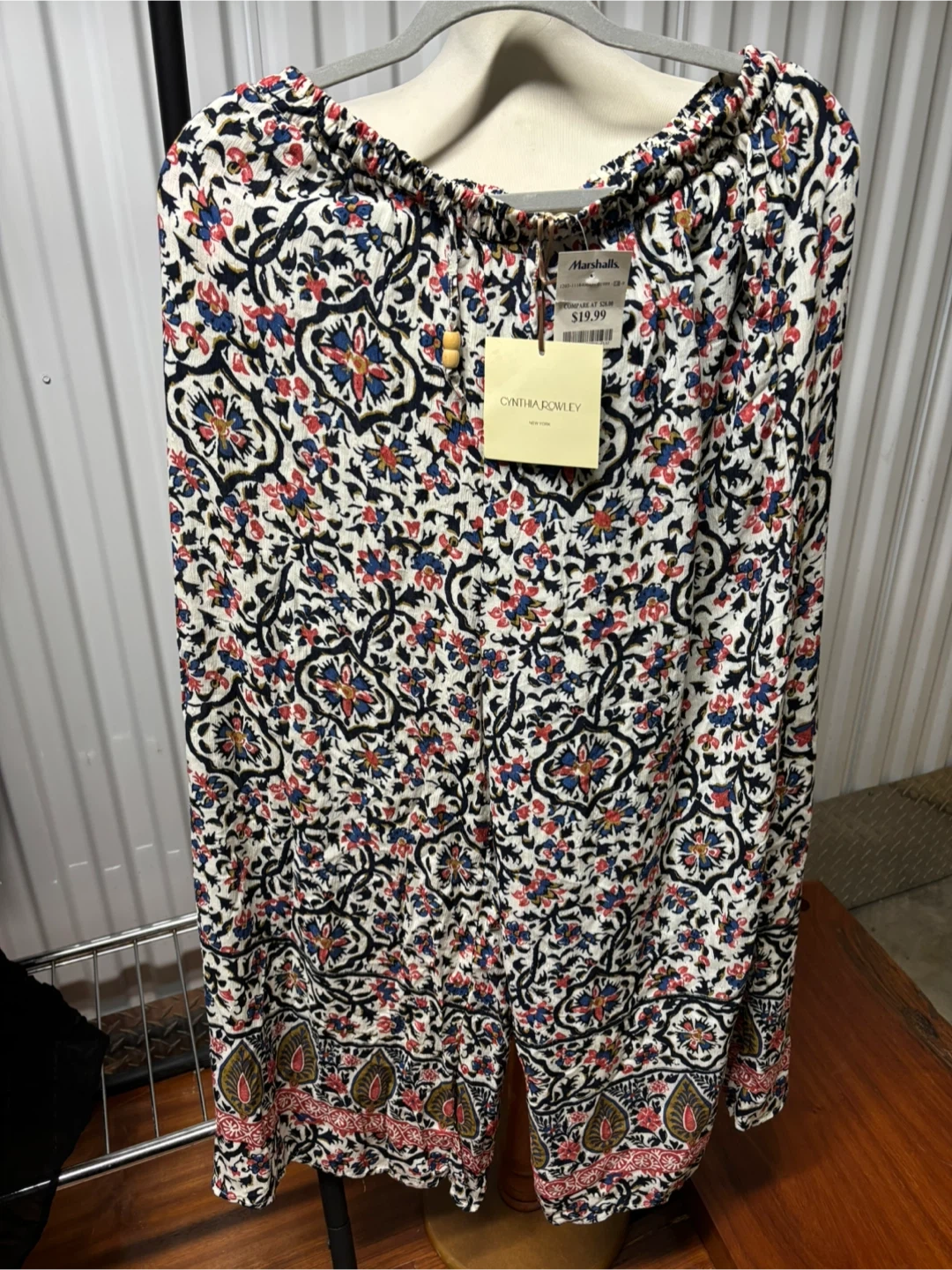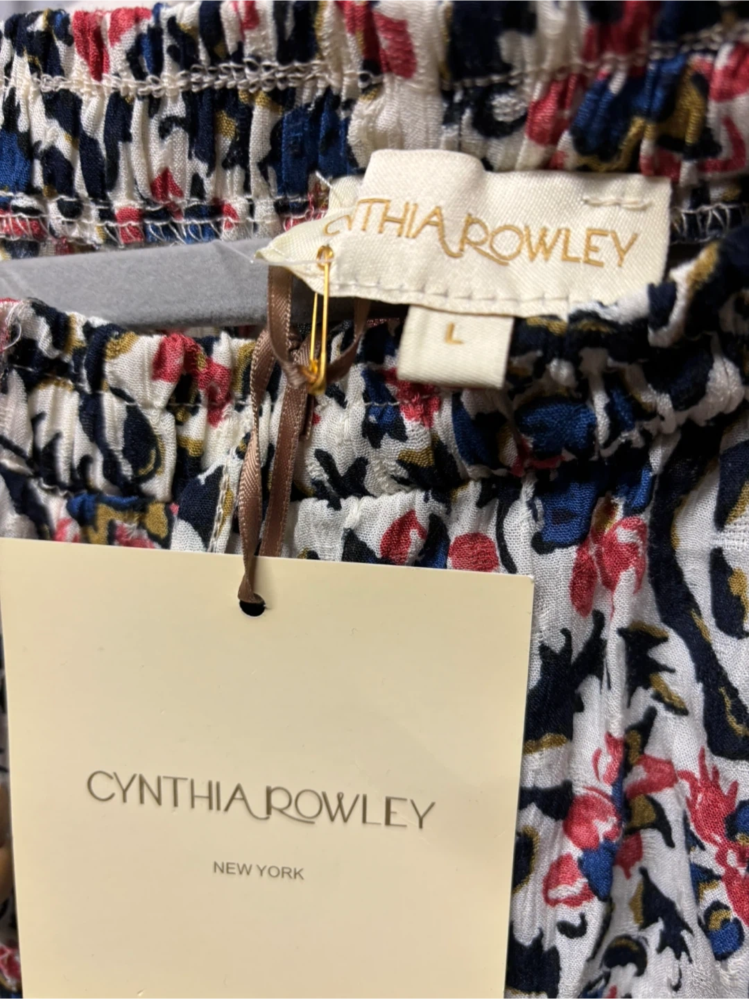 These are a pair of Cynthia Rowley pants in a size large. They feature a beautiful floral print. The pants are in great condition and were originally bought for $19.99!