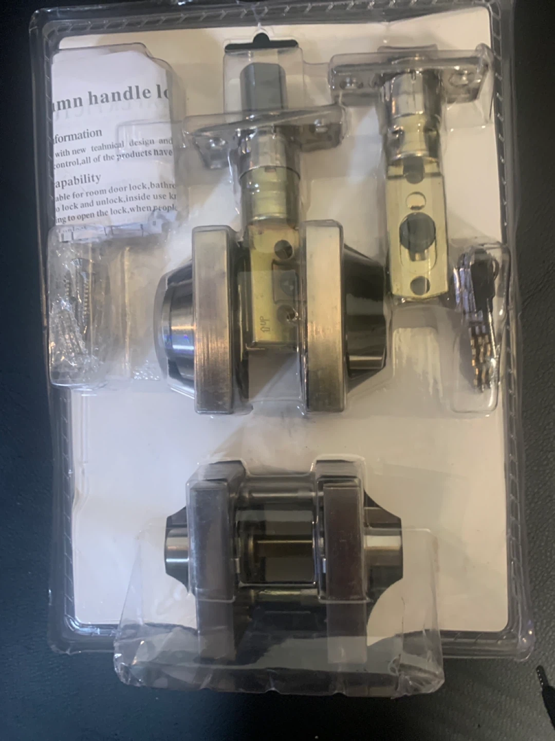 Selling a brand new Home Idol Lever Handle & Deadbolt Combo Set! This combo set includes both the lever handle and deadbolt, perfect for upgrading your home security. It's still in its original packaging and ready to be installed. Great for room door, bathroom, or any door you want to lock and unlock inside