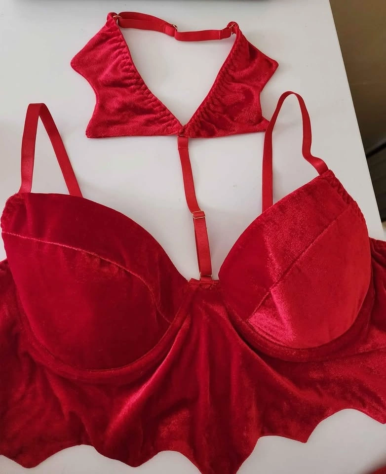 Red Velvet Goth Lingerie Set * Choker * Bra Crop Top * Bat * NEW
