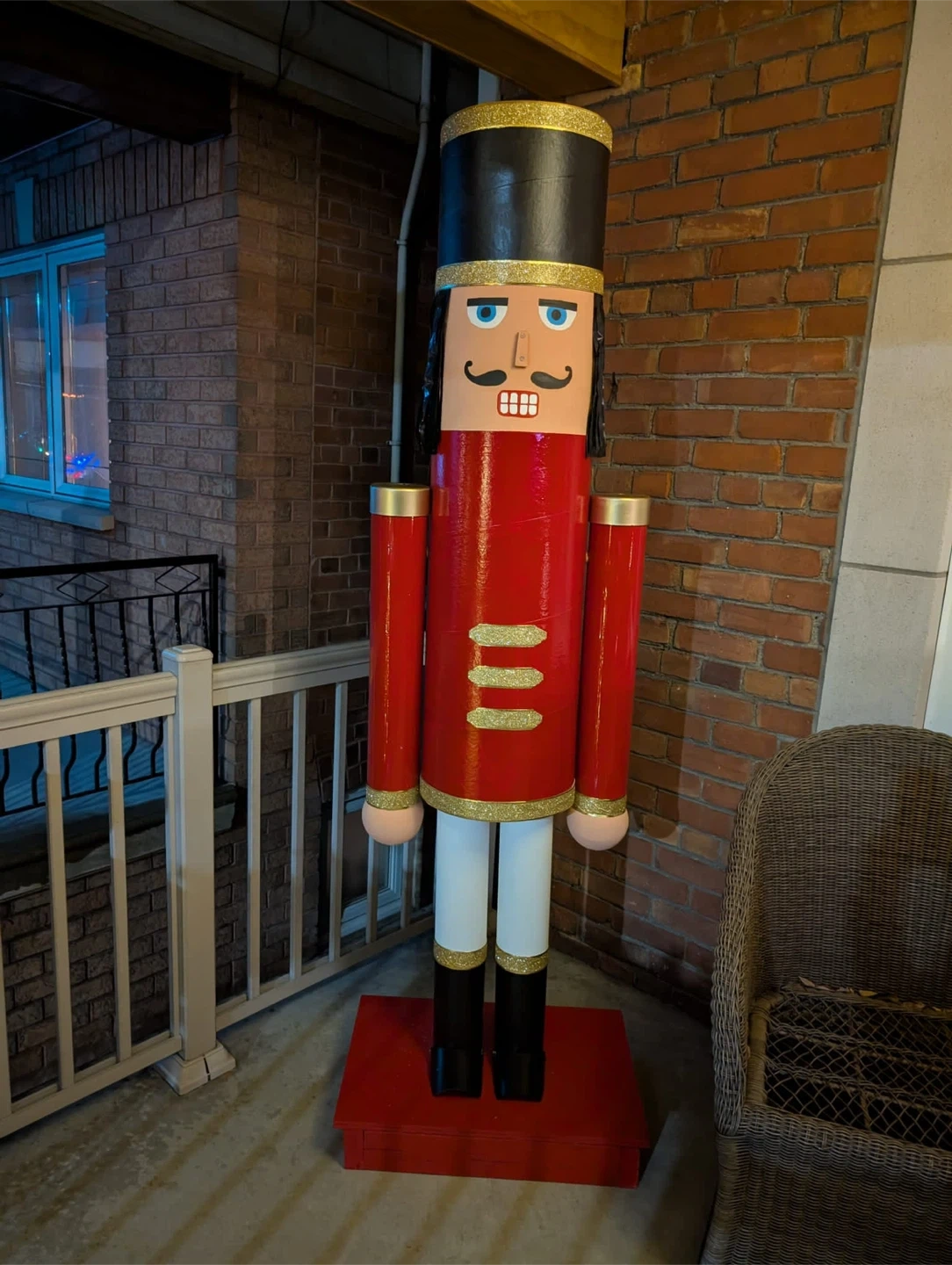 Here's a large decorative nutcracker, perfect for adding a festive touch to your home during the holidays! It's in great shape and ready to bring some cheer to your porch or entryway