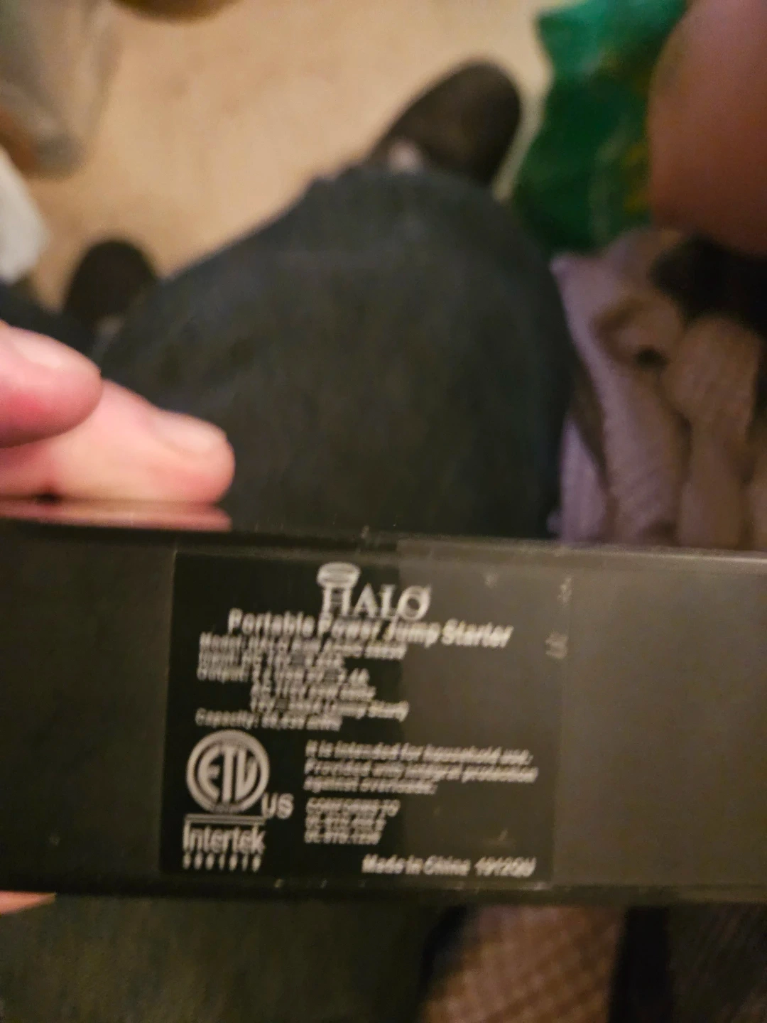 Selling a Halo portable power jump starter! It has a capacity of 20,000 mAh, and features 5V/2.4A USB ports for charging your devices. Great for emergencies or camping!