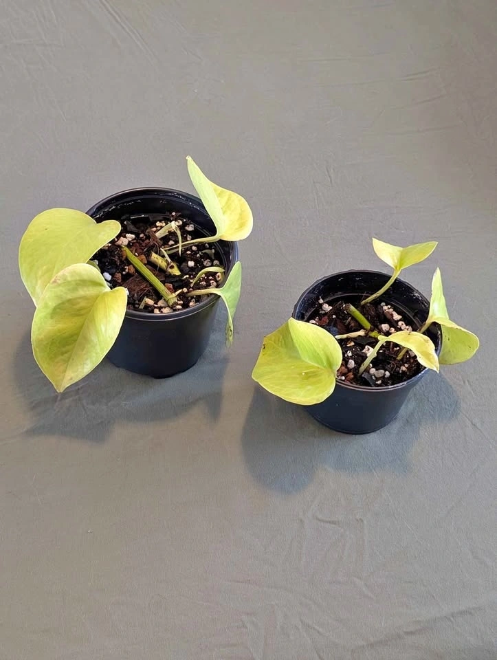 Neon pothos plants in 3.5" pots. Multiple rooted cuttings in soil. $5 each. ONLY 1 LEFT.