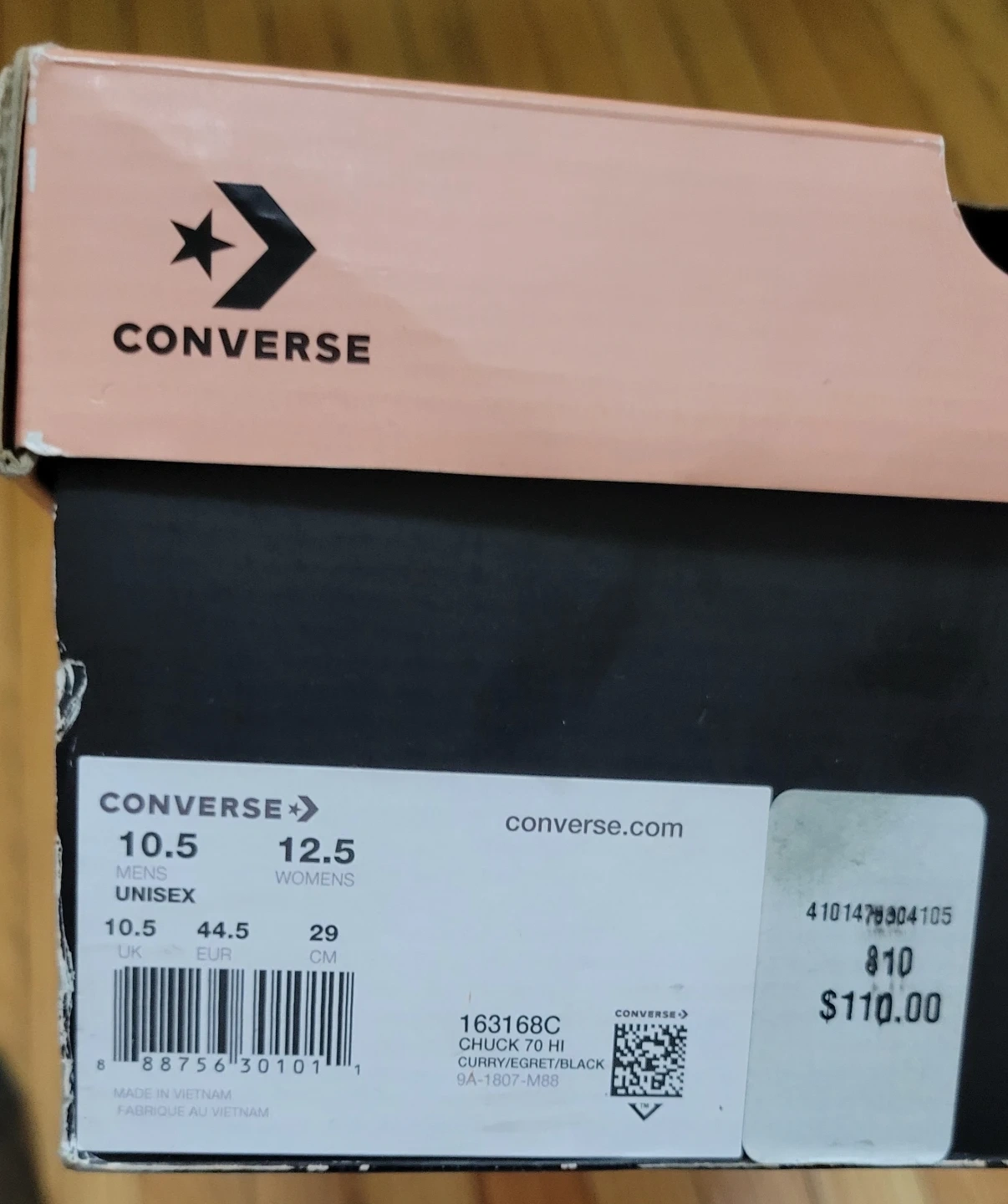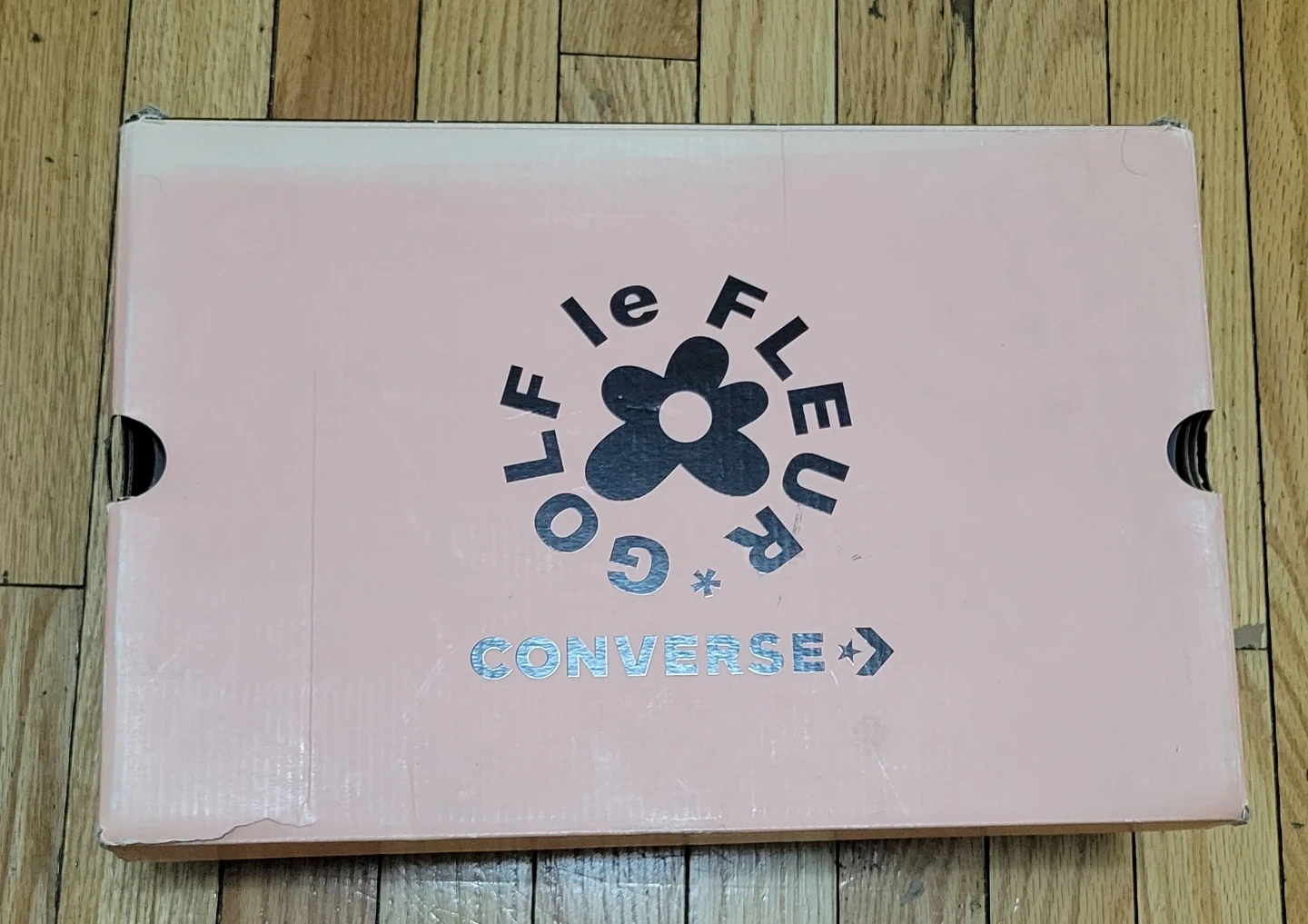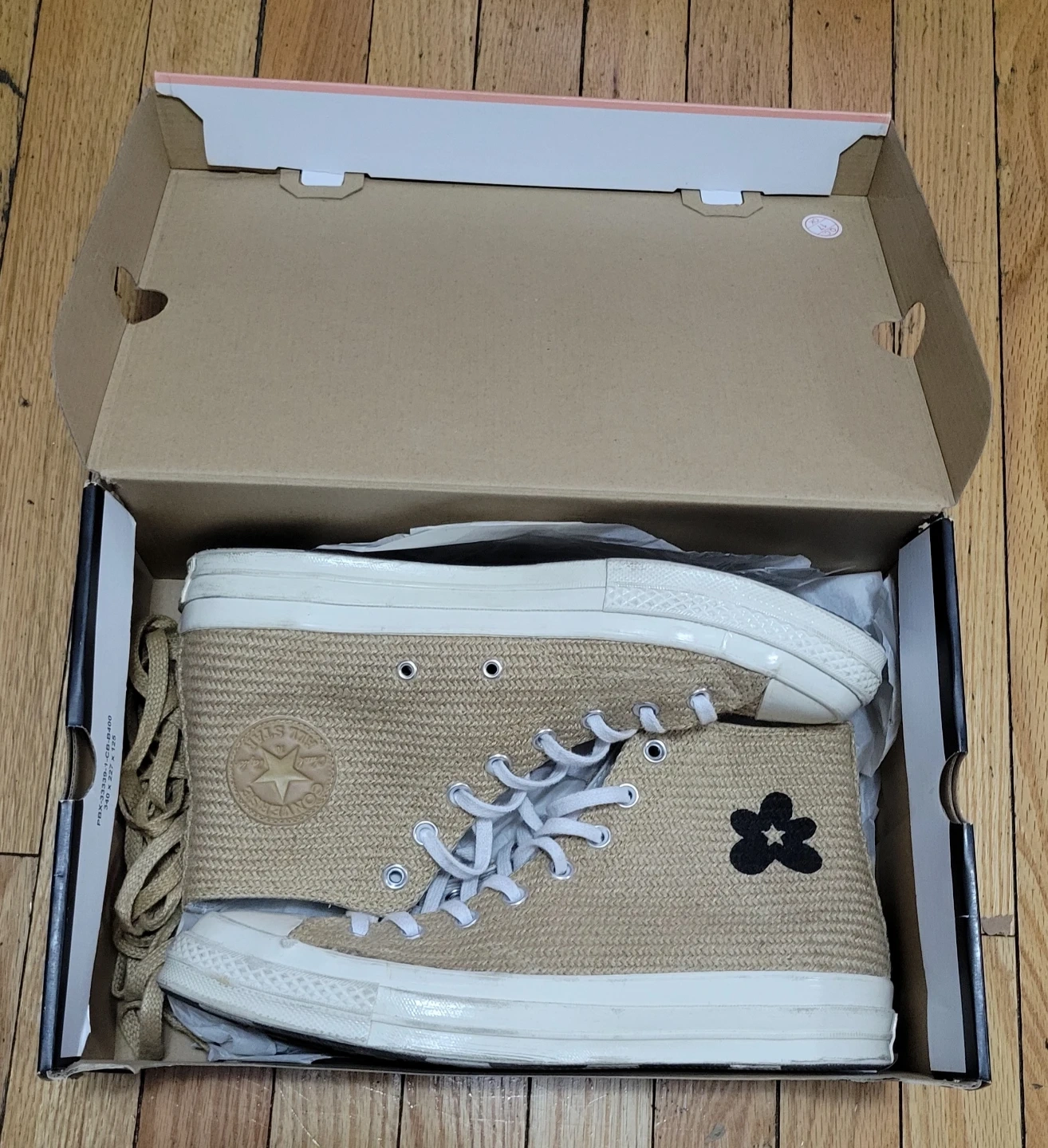 Selling a pair of Converse x Golf Le Fleur high top sneakers in a wheat color. The shoes are a US men's size 10.5. The upper is textile with a leather lining and a rubber outsole. Comes with the original box!