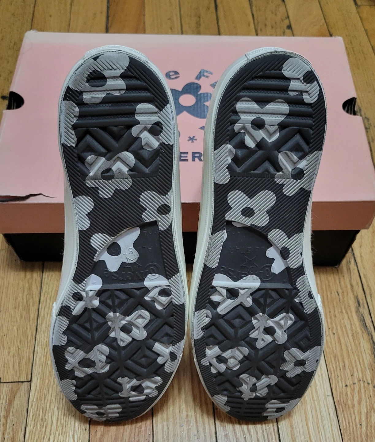 Selling a pair of Converse x Golf Le Fleur high top sneakers in a wheat color. The shoes are a US men's size 10.5. The upper is textile with a leather lining and a rubber outsole. Comes with the original box!