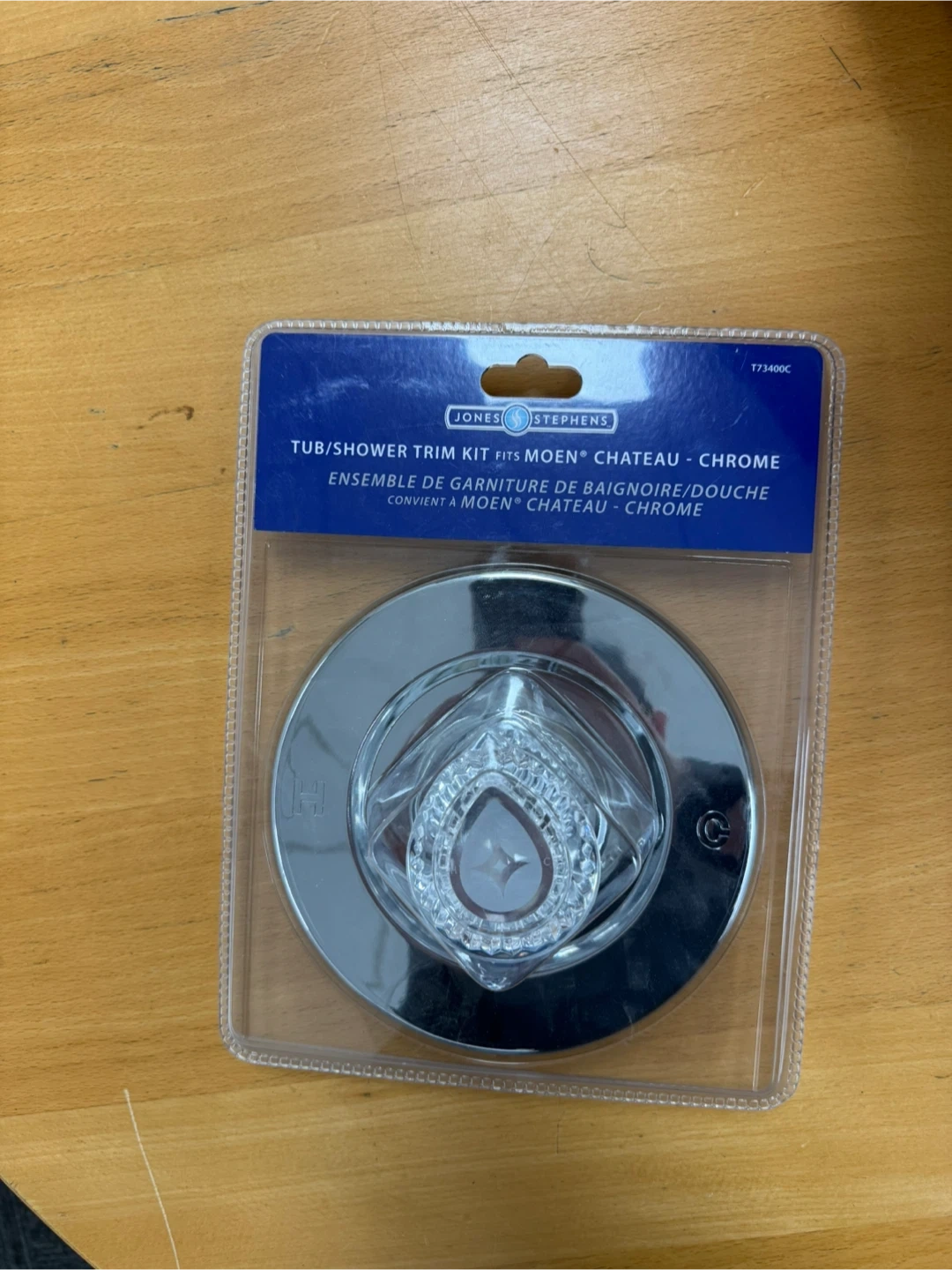 This is a new tub/shower trim kit in chrome. It fits Moen Chateau and comes in its original packaging. Great for a quick bathroom upgrade!