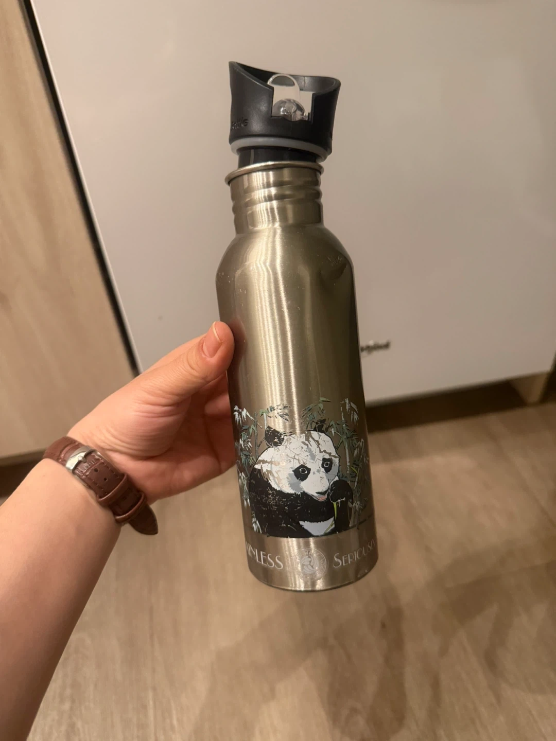 Keep your drinks cool with this Enviroproducts stainless steel water bottle! It's a 0.6L bottle made of 304 food-grade stainless steel. Features a cute panda design!