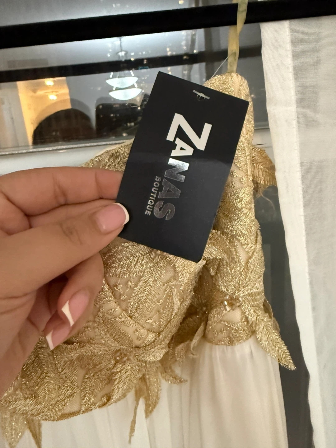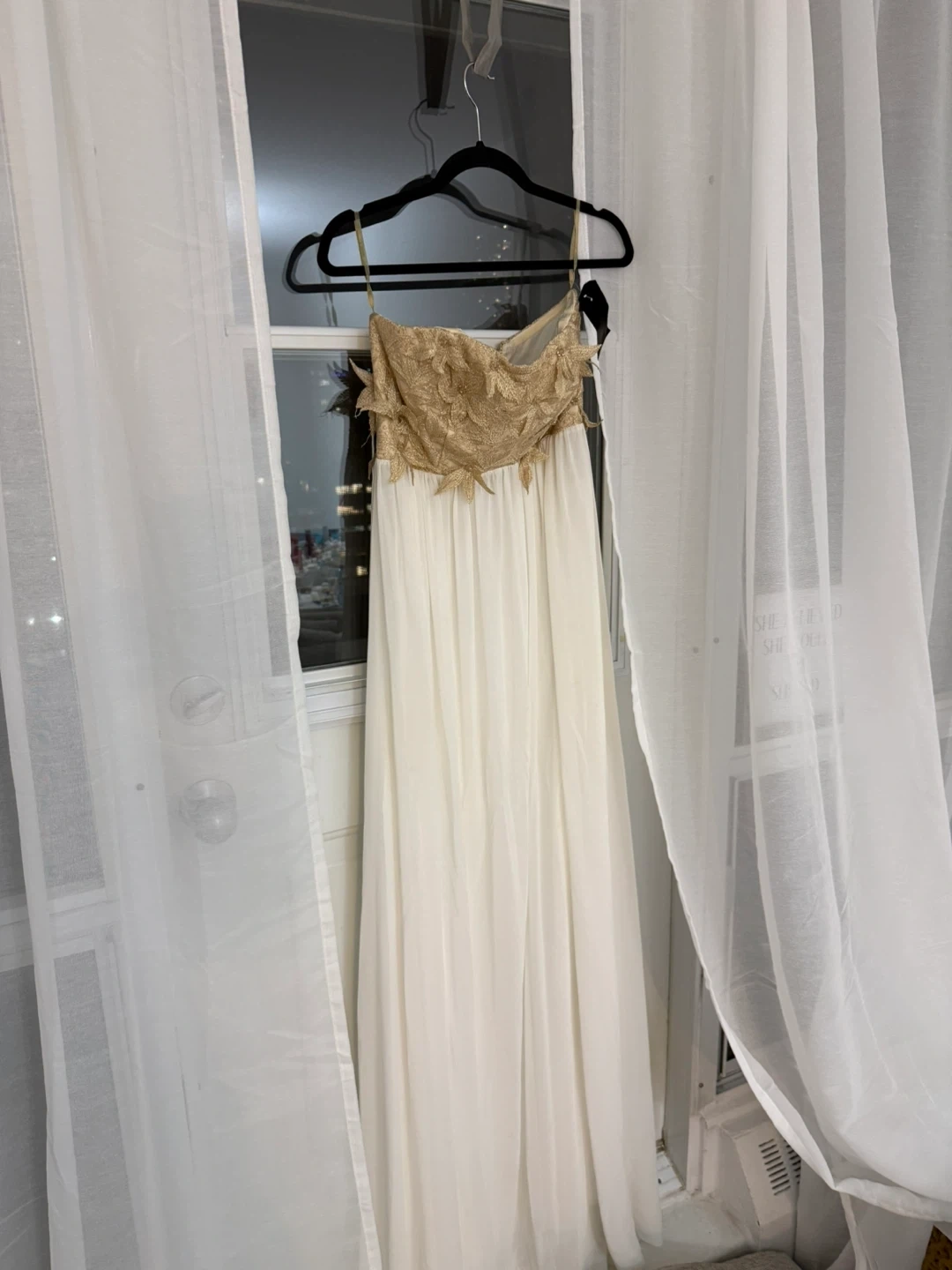 Selling a beautiful Adore dress in size 40 from Zanas Boutique! It features a stunning gold floral bodice and a flowing white skirt, perfect for a special occasion