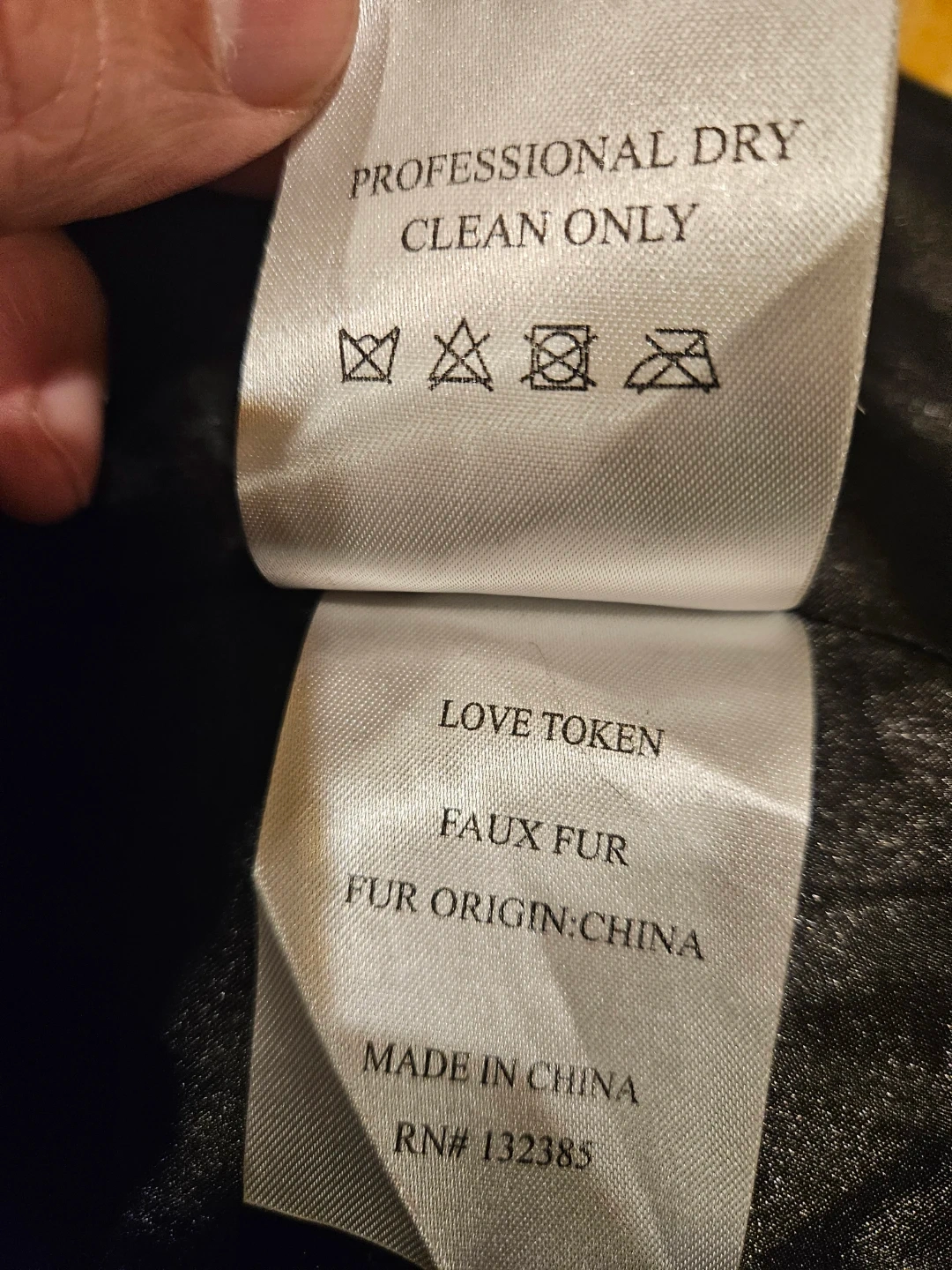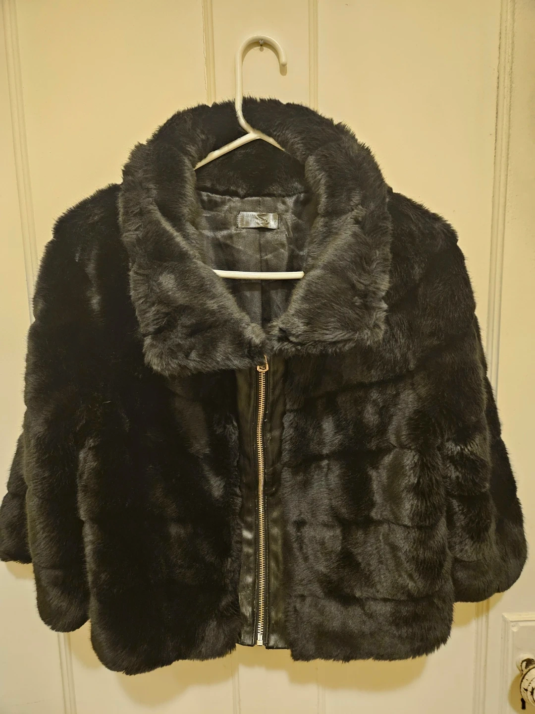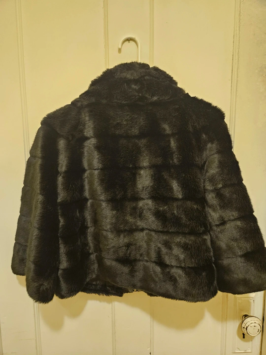 Selling a Love Token faux fur jacket in black! It's super soft and stylish, perfect for adding a touch of glam to any outfit. Please note there is some wear on the inside lining near the zipper.