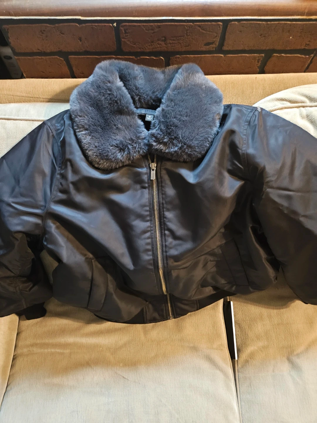 Selling a black Uniqlo bomber jacket. It's a size XS and has a faux fur collar. Great for adding a little warmth and style to your outfits!