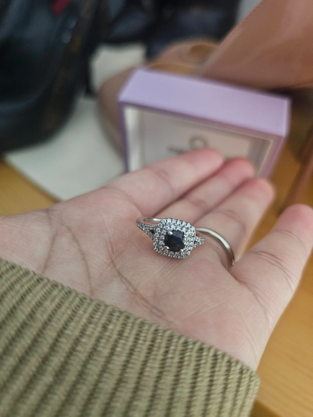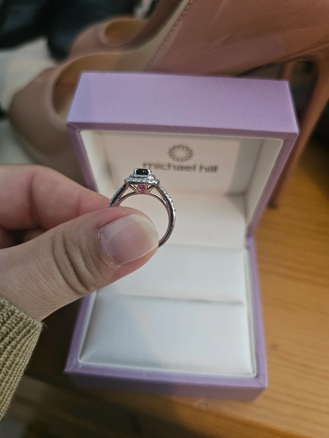 Selling a beautiful ring from Michael Hill. It features a blue sapphire surrounded by smaller diamonds and some ruby rose. All natural. Comes with the original box!