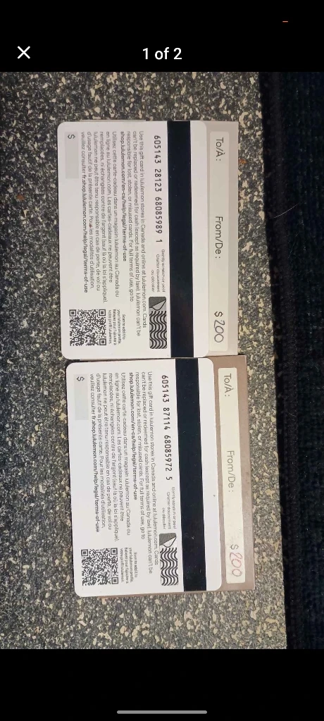 π Lululemon Gift cards ($400 value!!)$370 both π