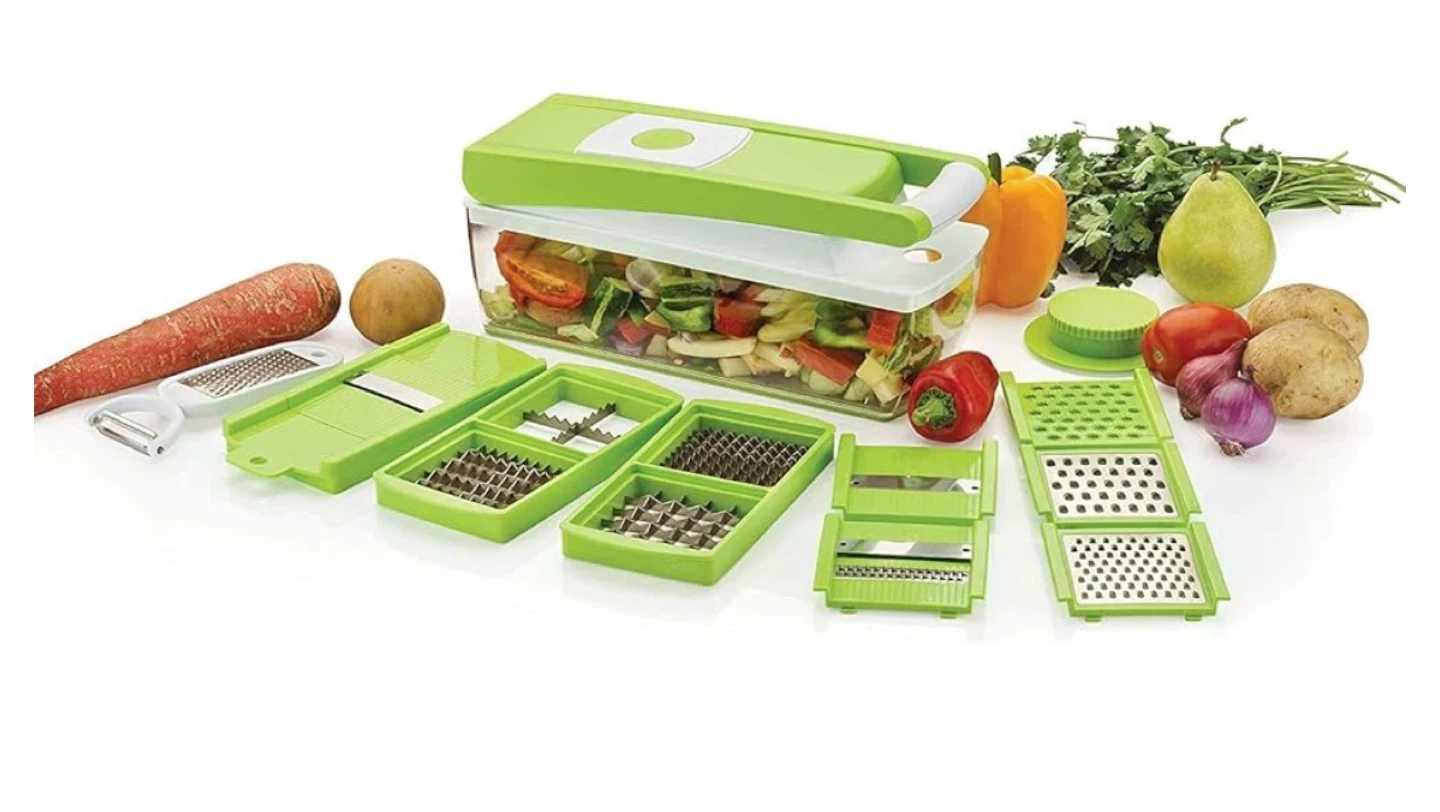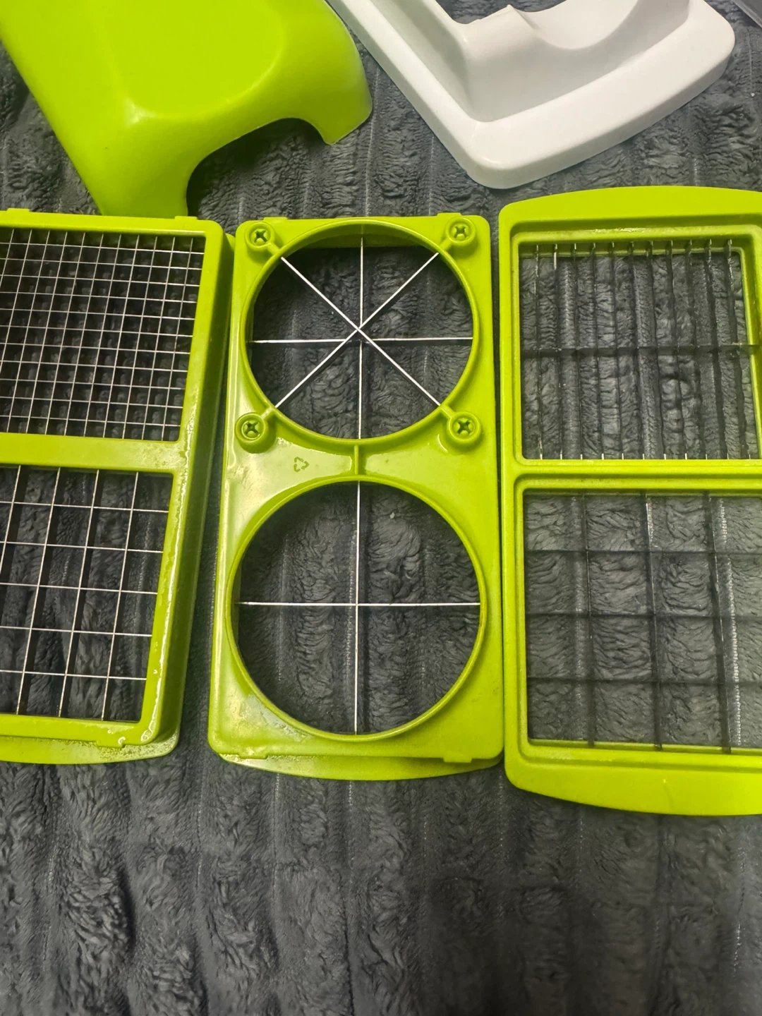 I'm selling a vegetable chopper, perfect for speeding up meal prep! It comes with multiple blades for different cutting styles. Great for dicing, slicing, and chopping veggies with ease