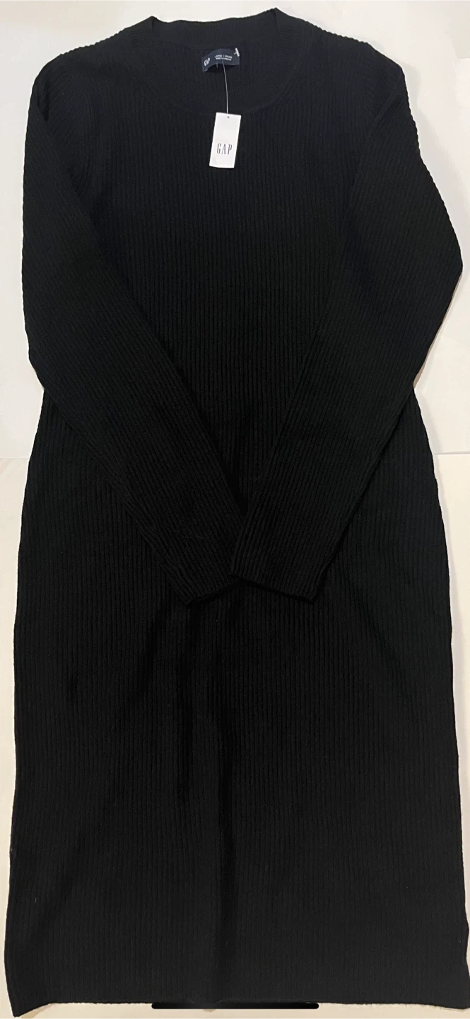 I have a brand new GAP black ribbed knit dress for sale! It's a beautiful and versatile piece that can be dressed up or down. The material is soft and comfortable, perfect for everyday wear. Never been worn and still has the tags attached
