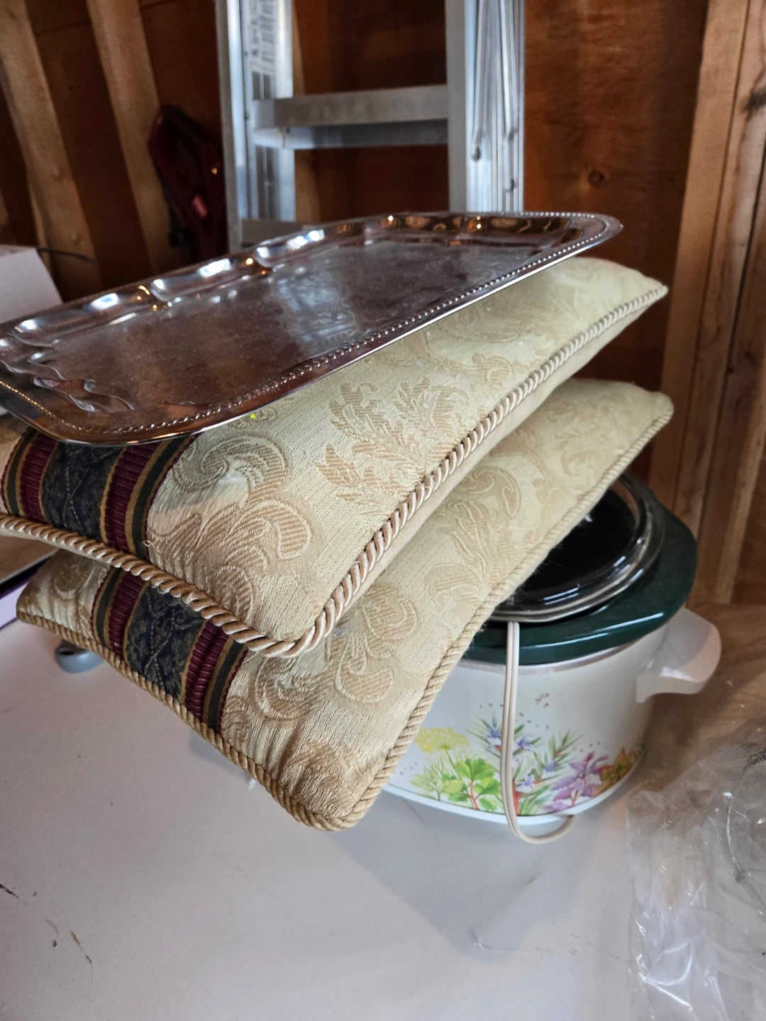 Selling a variety of home decor items, including decorative pillows, trays, and other miscellaneous pieces. Perfect for adding some character to your space!