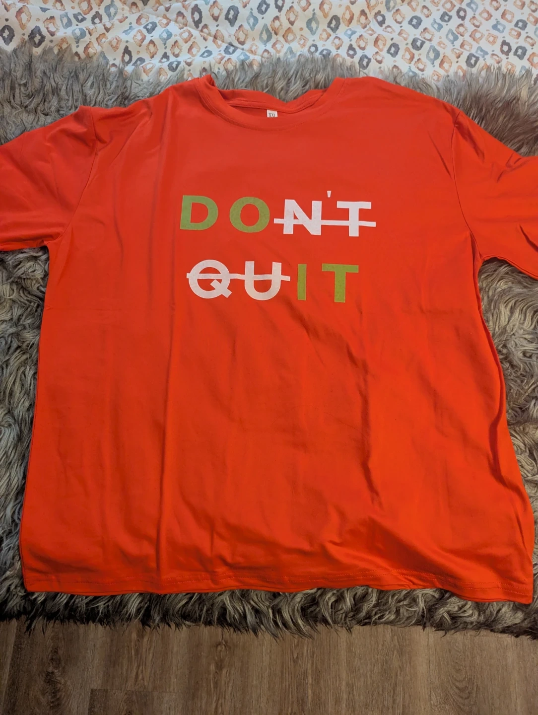Men's No-Brand Red Don't Quit Shirt for sale! Only $5, offers accepted. Very lightly used. Size XXL and pickup will be available in FEBRUARY.