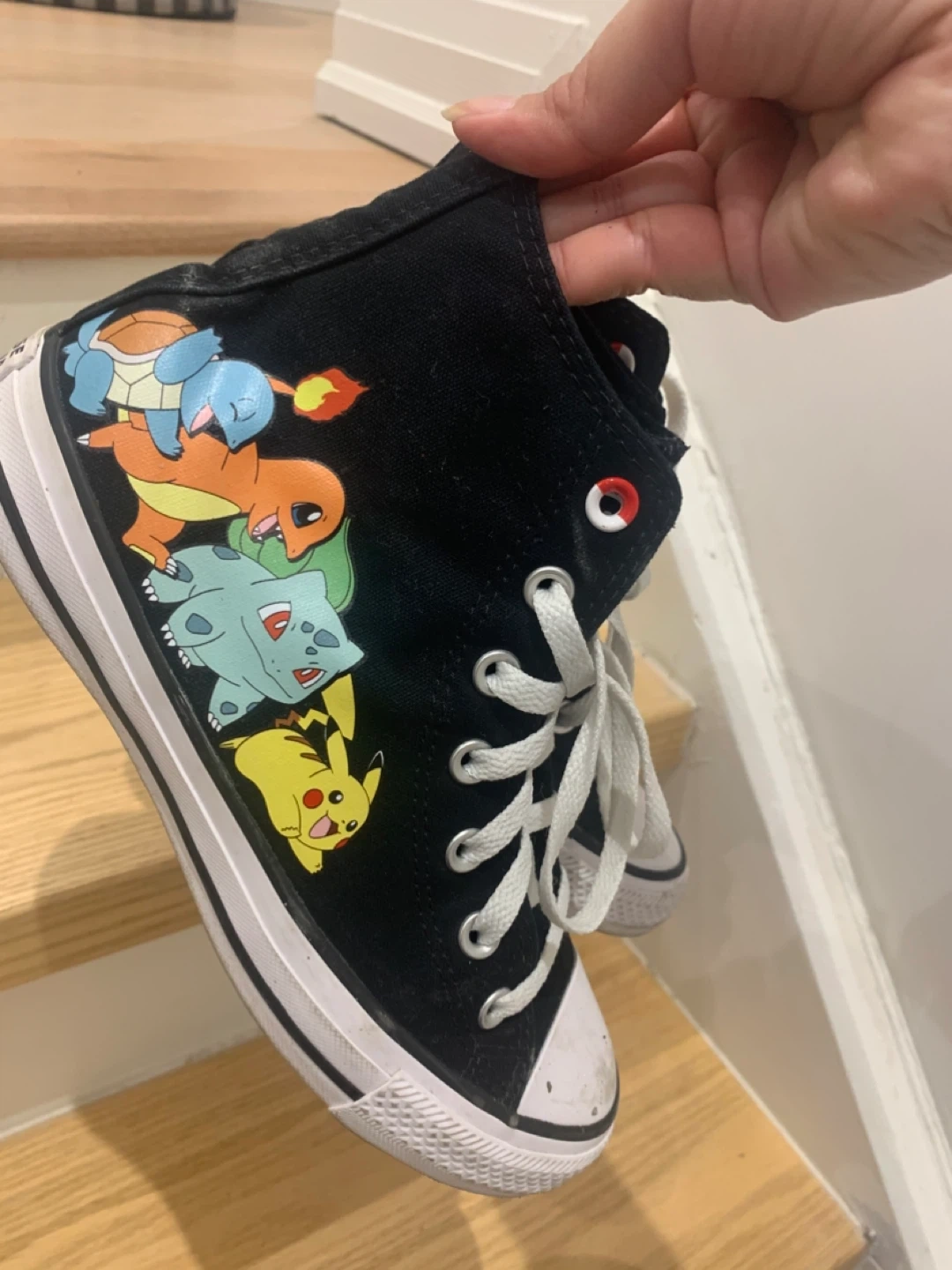 Selling a pair of Converse Chuck Taylor All Star high-tops featuring Pokémon characters! They're in good condition and super fun. The size is a women's 7.5 (men's 5.5), UK 5.5, EUR 38, and 24.5 cm