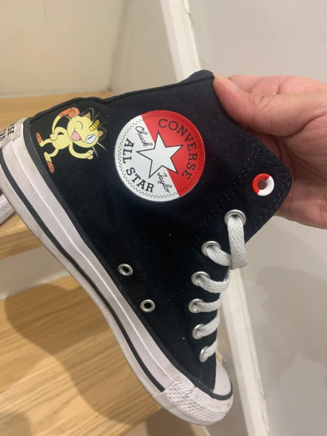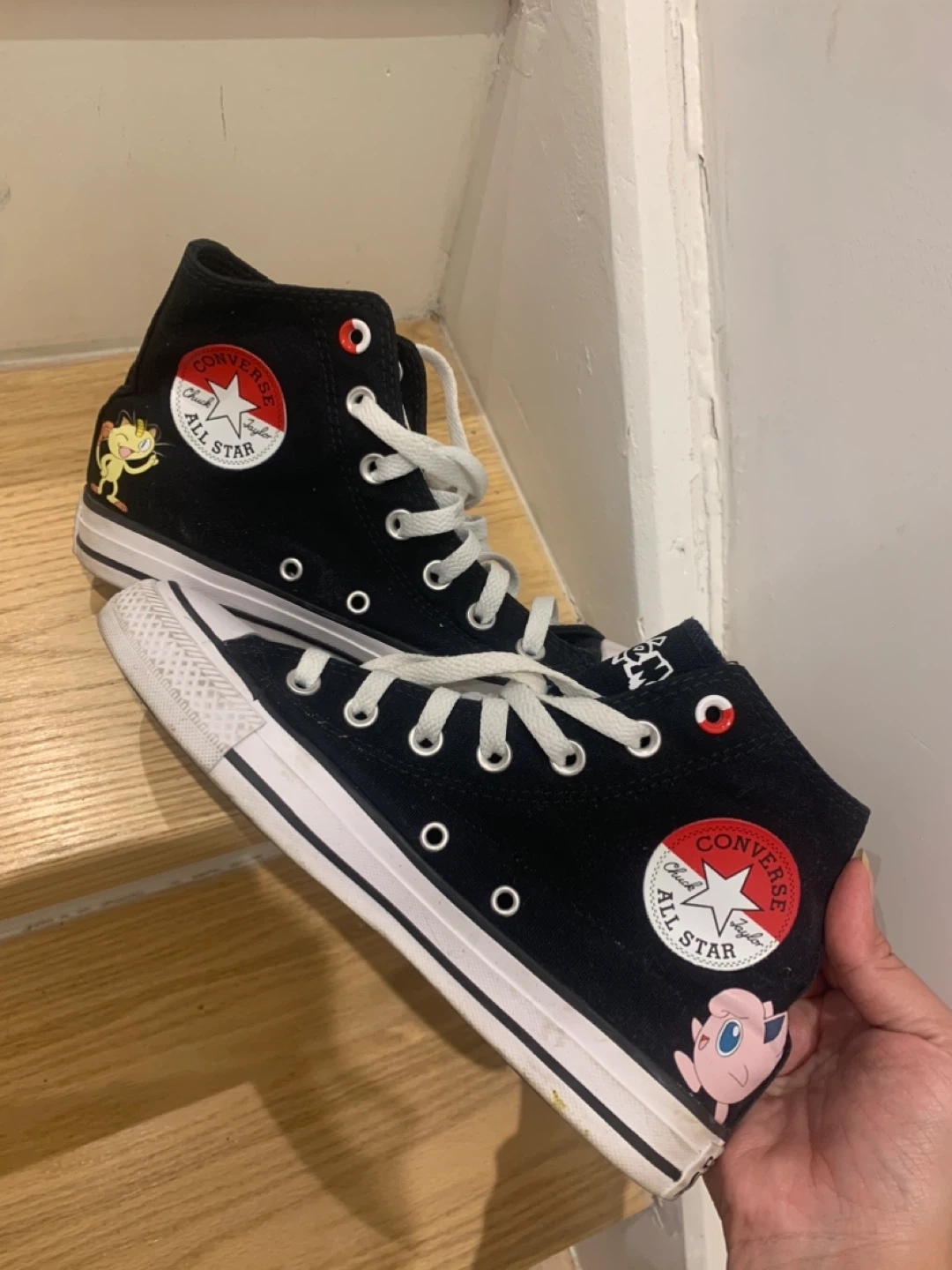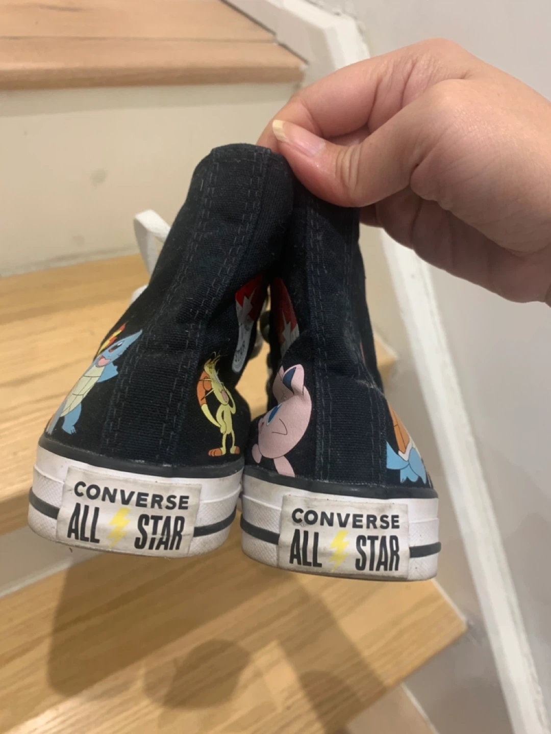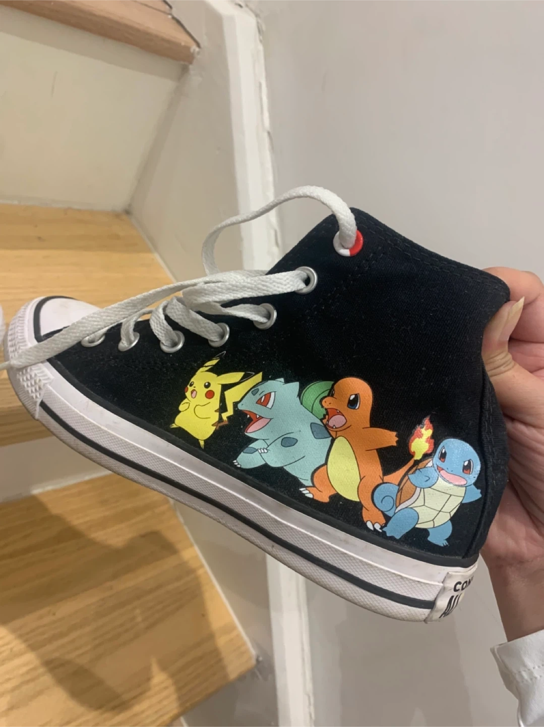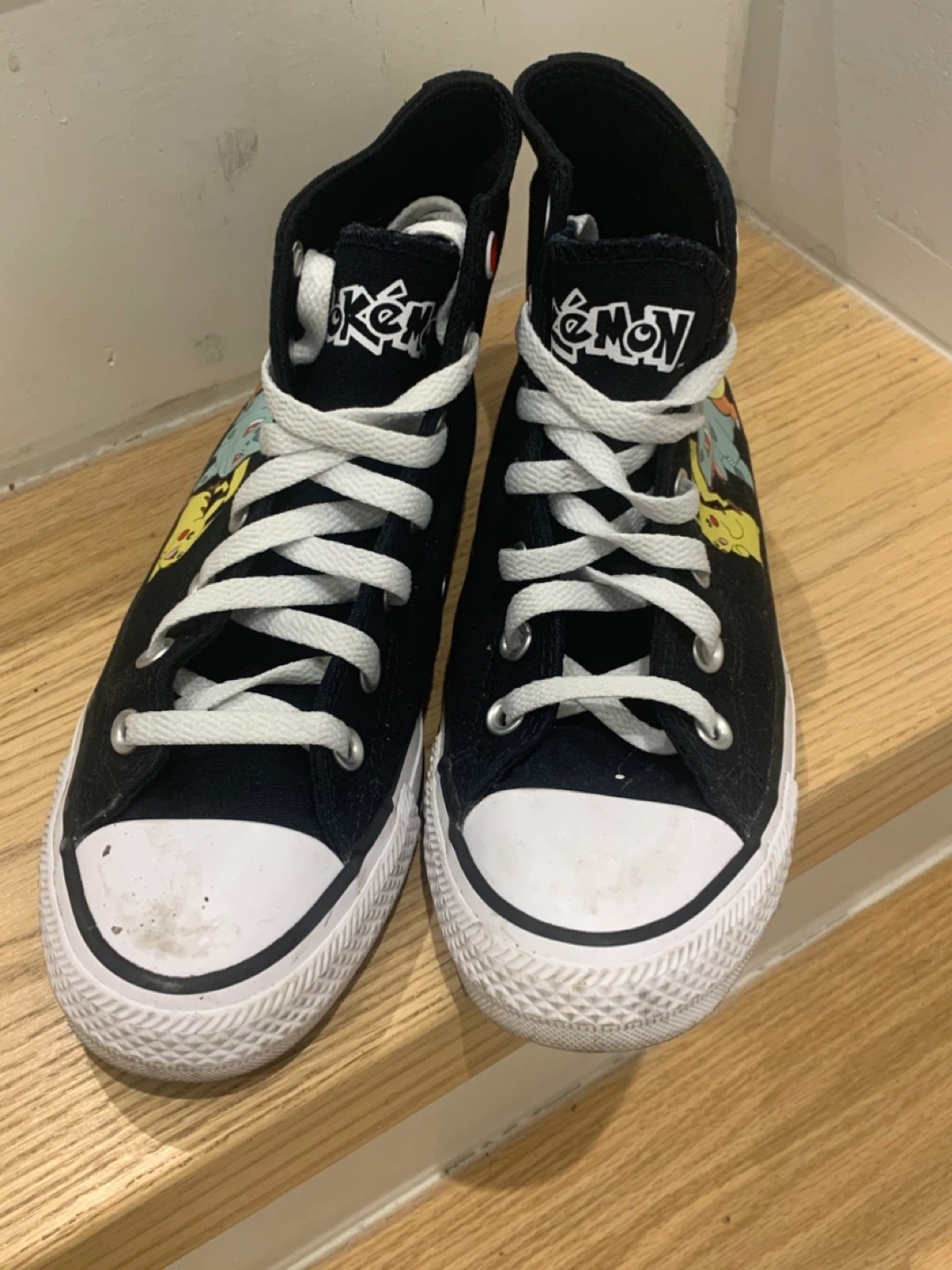 Selling a pair of Converse Chuck Taylor All Star high-tops featuring Pokémon characters! They're in good condition and super fun. The size is a women's 7.5 (men's 5.5), UK 5.5, EUR 38, and 24.5 cm
