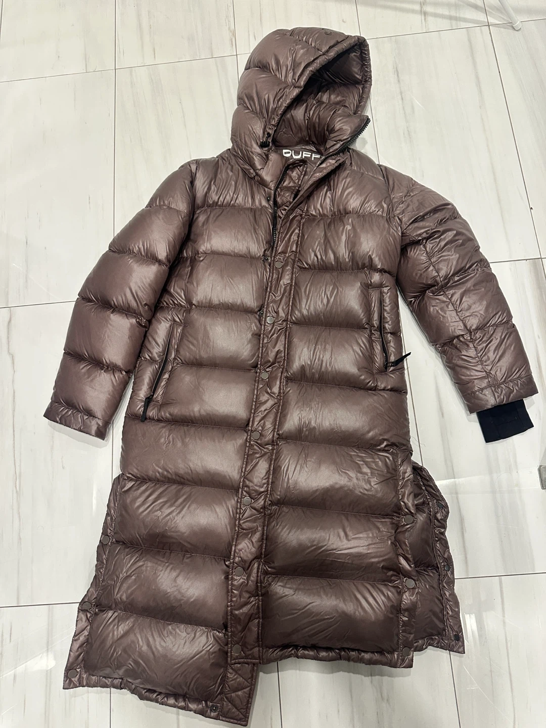Selling an Aritzia The Super Puff Long in Hi-Gloss! It's a French Hi-Gloss taffeta long premium down puffer jacket.