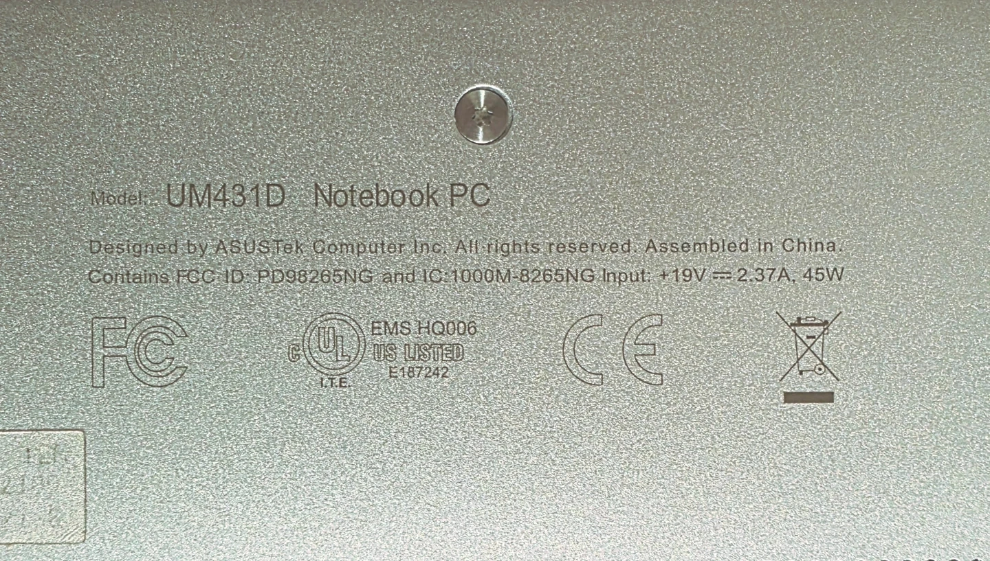 A good used ASUS ZenBook UM431D laptop, built year 2020