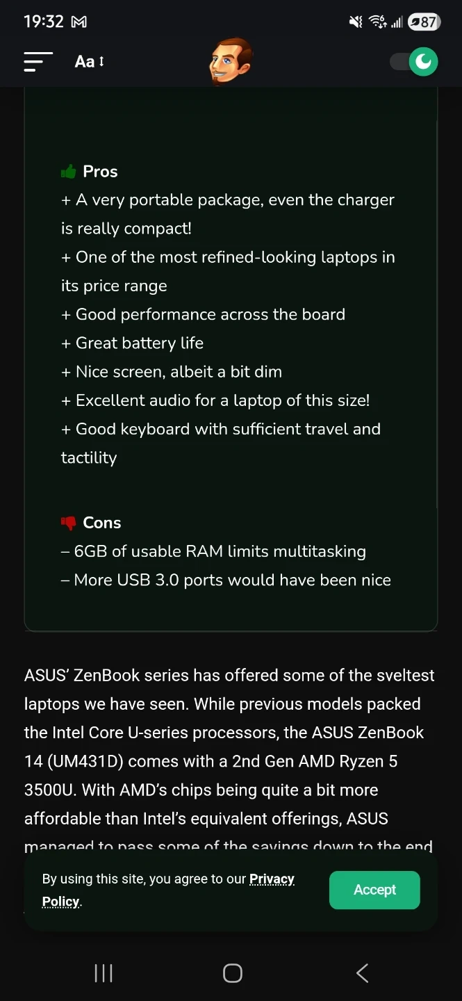 A good used ASUS ZenBook UM431D laptop, built year 2020