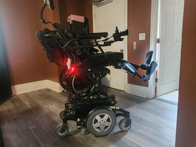 Fully loaded Invicare TDX SP with all available extras. LED light kit, independent legs, back seat tilt, 6' elevation kit, Roho cushions, etc. 6 years new. Batteries, solid tires, and casters were replaced last year in service. Comes with a brand new in-box charger. Rain poncho and carrying bag. Backpack also.