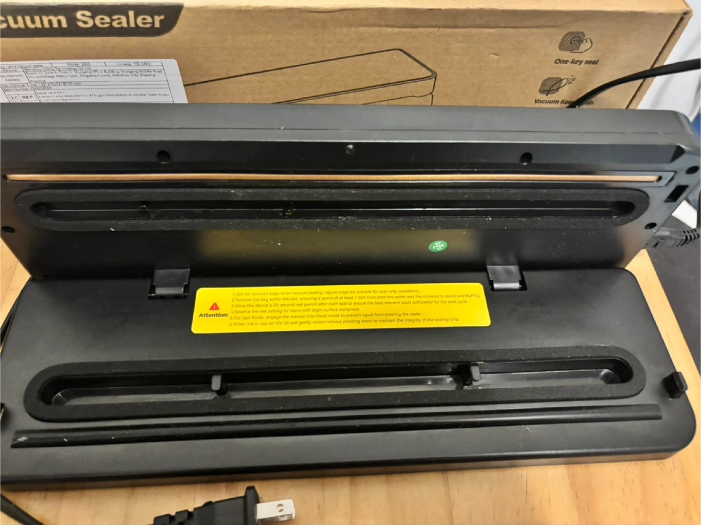 I'm selling a vacuum sealer that's perfect for keeping food fresh! It features a one-key seal and can be used for both wet and dry items. The box and vacuum bags is included!