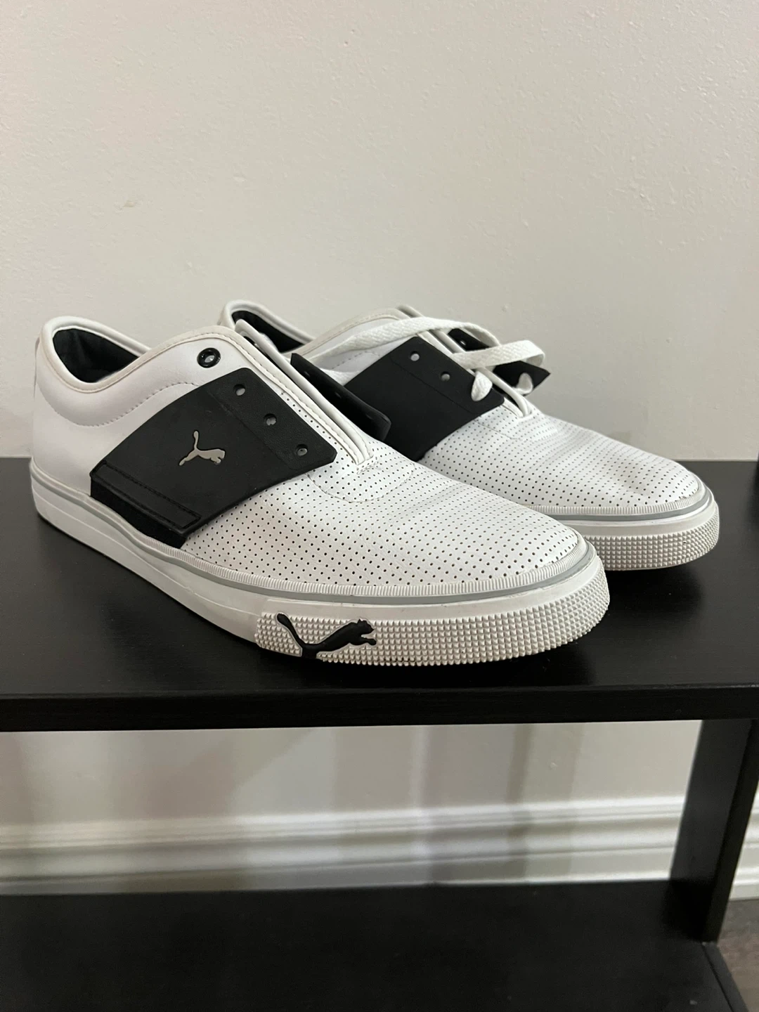 Selling a pair of Puma leather sneakers in white. They are in good condition and would be great for everyday wear.