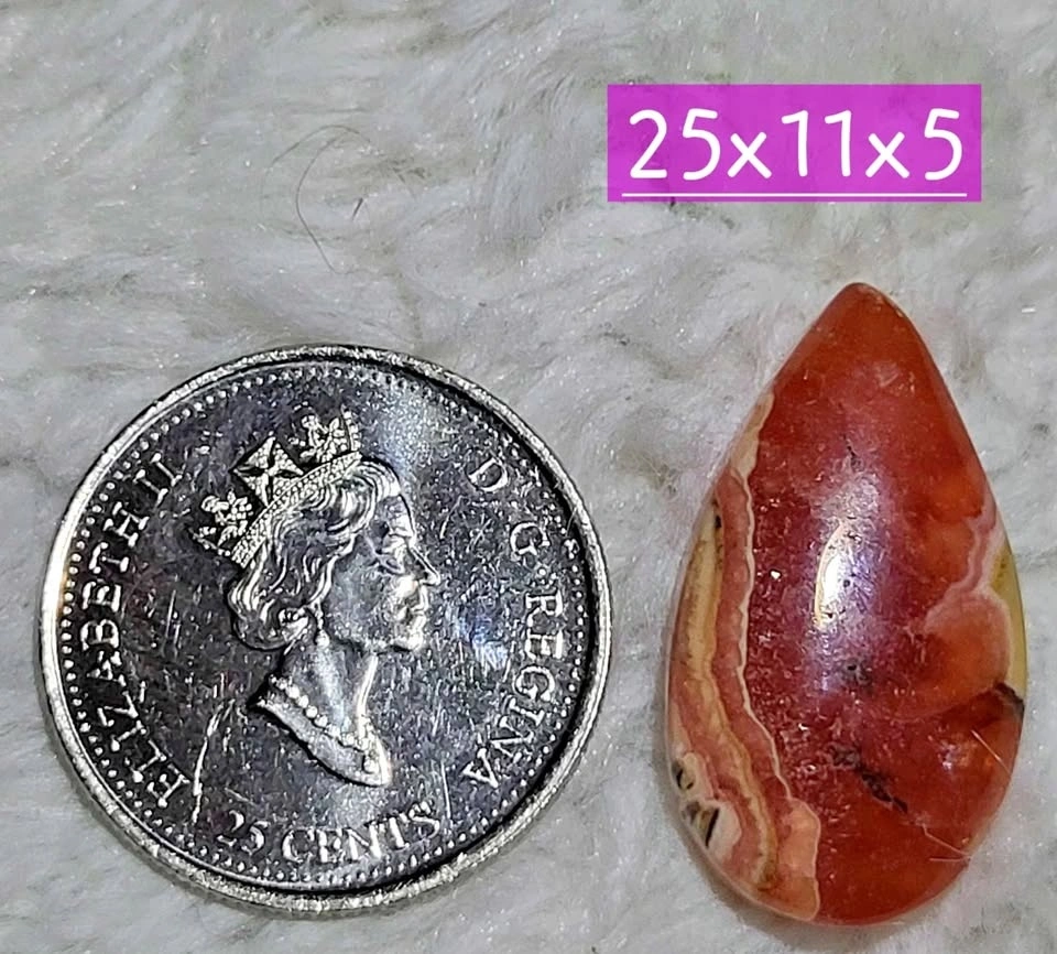 Top Grade 100% Natural Rhodochrosite teardrop. Hand cut and polished with a flat back. Not drilled.