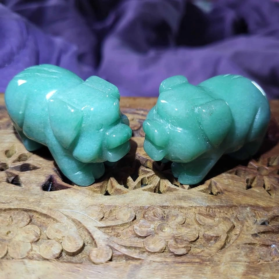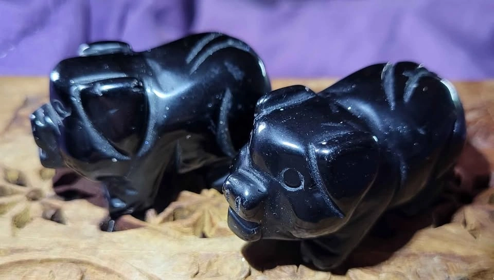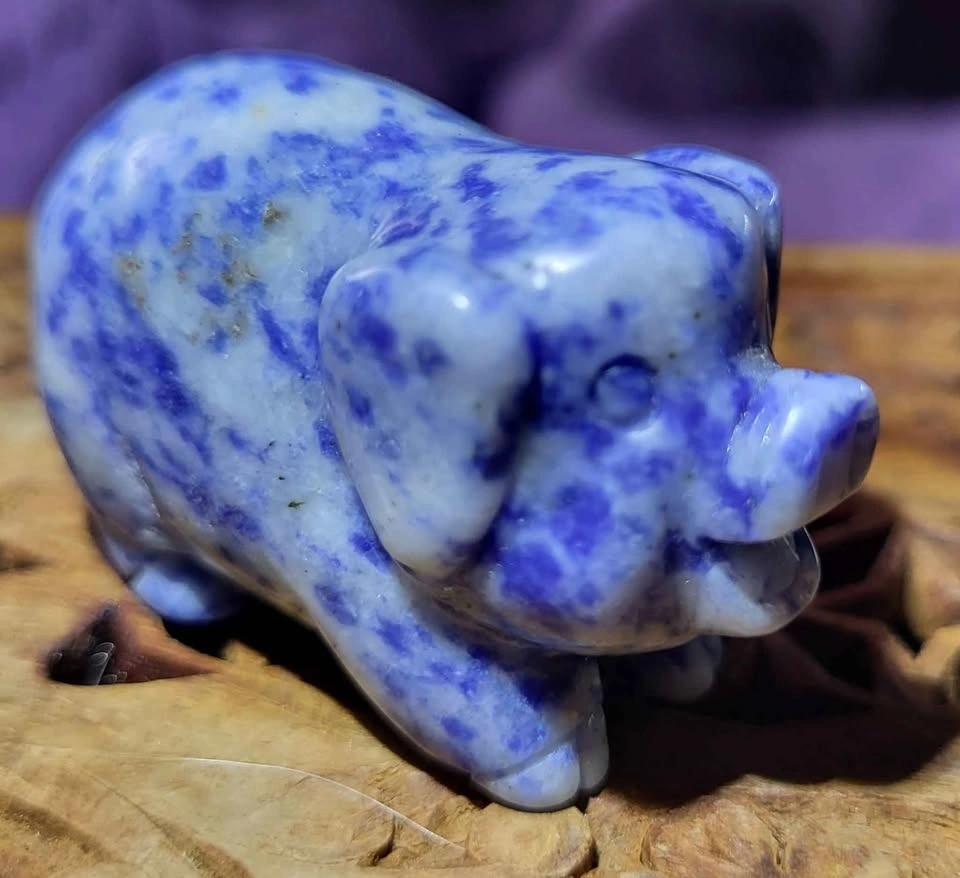 Crystal Pigs, sodalite, black Obsidian, Opalite, green Aventurine, Unakite, Pyrite, Jade, and Serpentine. These are all carved by hand. Each pig is $25 or I can sell the entire lot together. I also have other larger pig collectibles in different crystals.
