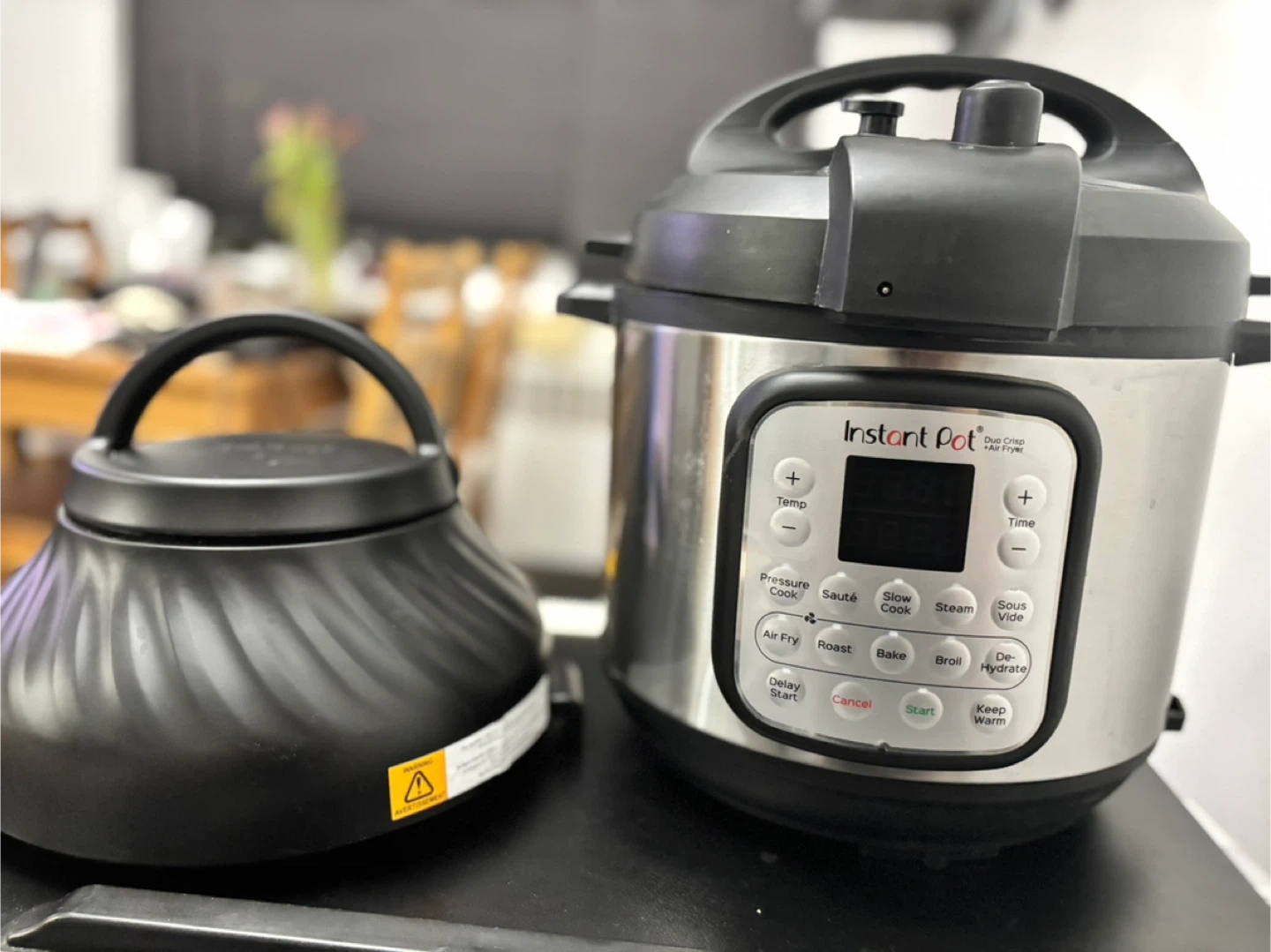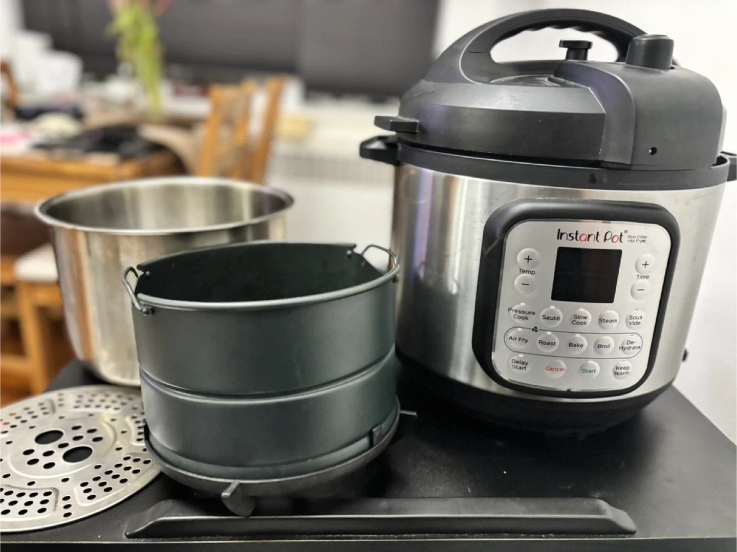 Selling an Instant Pot Duo Crisp + Air Fryer. It's in great condition and ready to help you make delicious meals! It comes with the air fryer lid and inner pot, plus the air fryer basket and trivet for all your cooking needs