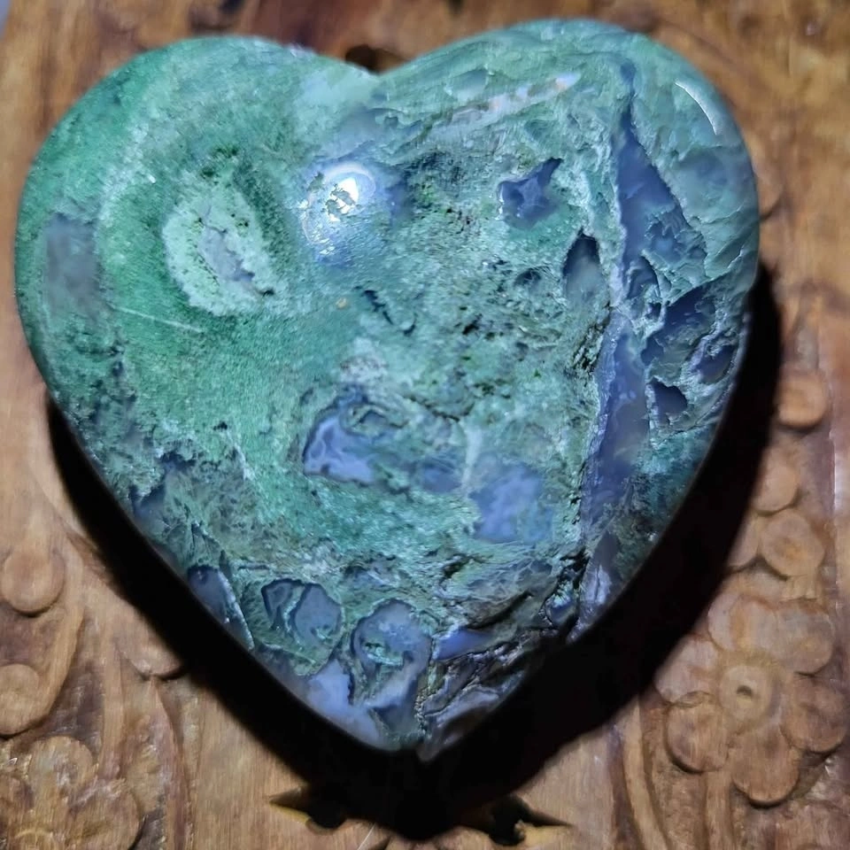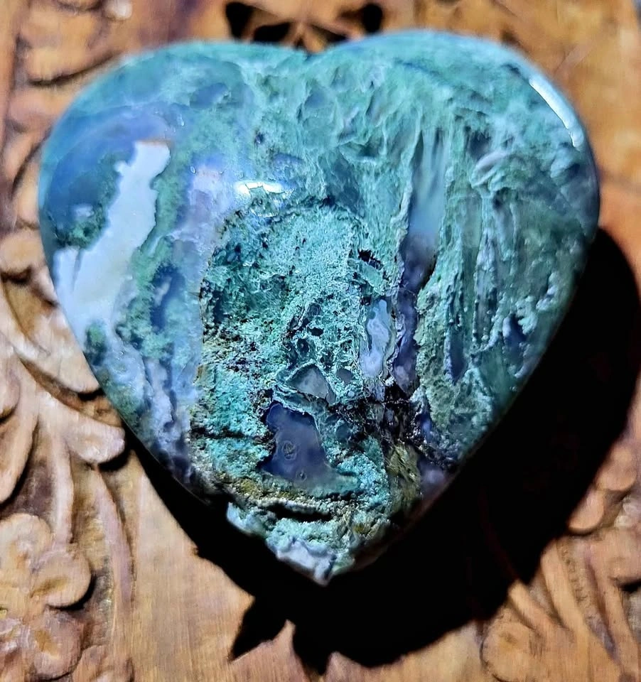 Beautiful and translucent large Moss agate heart. A gorgeous collection piece.